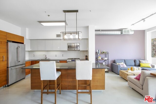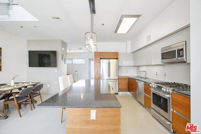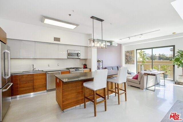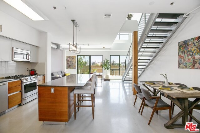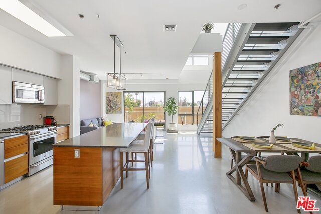 Architectural Masterpiece nestled in the heart of West LA; the T-Lofts were built in 2009 with high-end finishes and plenty of amenities. This two Level Loft unit features 2 bedrooms, plus Den and 3 full baths with Kohler fixtures, Kitchen with GE appliances, soft closing drawers, concrete floors, balcony, and high ceilings. The two bedrooms are located upstairs providing separation and privacy. The master bedroom has a bath with separated shower and tub, and a large walk-in closet. Secured building beautifully landscaped and features a BBQ area, Gym, and Hot Tub. Two parking spaces are included with the unit, and the building features tons of guest parking and electric car charging stations. Very low HOA's. One of the best buildings in Los Angeles.