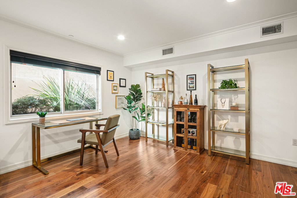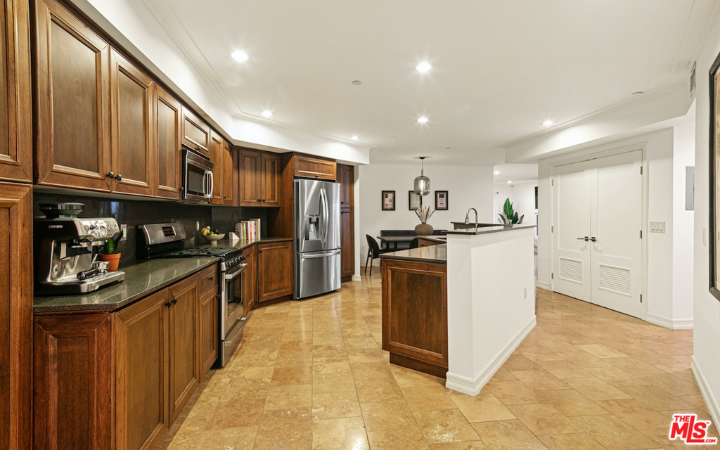 This immaculate 2 bedroom, 2.5 bath condo checks every box - oversized rooms, a thoughtful layout & incredible attention to detail. Centrally located in the heart of West LA and close to Santa Monica & Brentwood, this unit is the perfect mix of luxury urban living and peaceful sanctuary. The foyer leads to a large kitchen with granite countertops, Bosch appliances & beautiful custom cabinetry. In the open living/dining room, a fireplace beckons and a connected stone-walled terrace--an airy, alluring private retreat--extends the living room outdoors. The primary bedroom is an enviable getaway with dual closets and an en-suite bathroom akin to a fine hotel, boasting a dual sink vanity, glass shower & soaking tub. Additional amenities include a Nest thermostat, double-pane windows, elegant travertine & walnut floors, recessed lighting, crown moldings, and side-by-side laundry in-unit. Tandem parking spaces w/an electric car charger, guest parking & two community patios complete this gem.