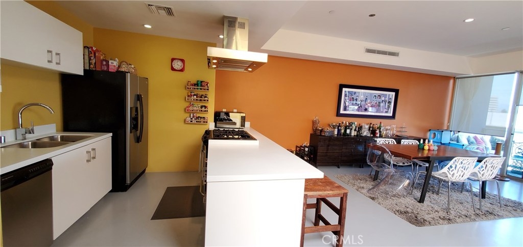 Welcome home to a bright and open concept floorplan offering a of modern living, and convenient location! Less than 4 miles to the beach, and in a gated complex. 1 bedroom plus a spacious den with endless possibilities. Located on the highest floor, offering city views, and full privacy! Main floor offers a Powder room for guests, large Living Room and dining area which opens to a welcoming kitchen featuring all stainless steel appliances and sleek counters. A spacious balcony, perfect for relaxing, and BBQing, and a large skylight over the stairs flood the entire floor with natural light! Stairs lead down to the oversized master bedroom, and a spacious den/open area. Master bedroom featuring glass wall to allow more natural light, upgraded custom cabinets for plenty of storage, master bathroom with upgraded flooring, his/her sinks, and a shower in tub combo. Conveniently located downstairs is also a laundry area, and a 2nd full bath off the den. The home also comes with a tankless water heater, and 2 tandem assigned parking spots in the gated garage in the basement. Ample parking for guests with seven shared spots. Conveniently located close to Expo line, UCLA, shops, restaurants, & the beach