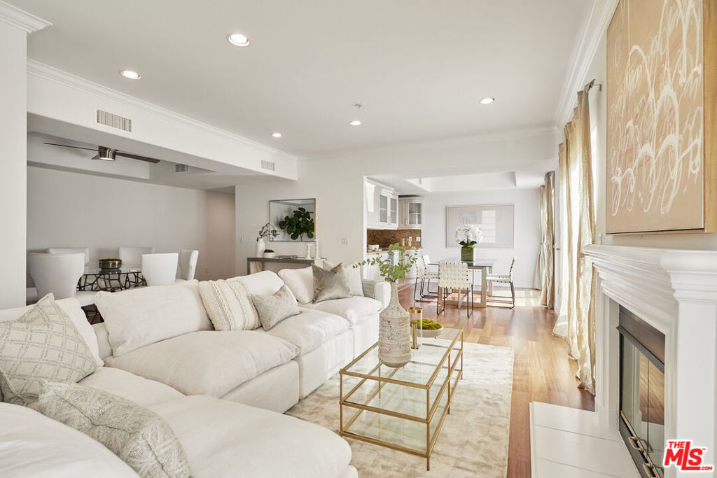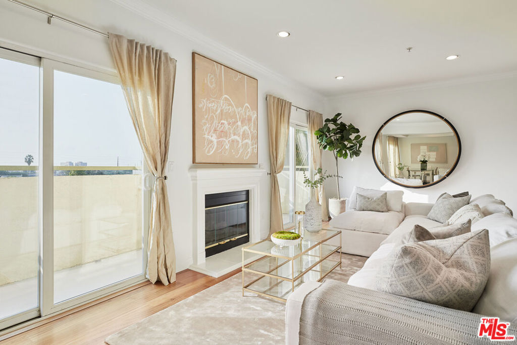 Elegant single-level penthouse in a newer well-maintained building. Located in a highly desirable part of West LA in close proximity to Brentwood for popular shopping and dining destinations. Graciously proportioned 3BR/2.5BA plus a Den. The contemporary layout, abundant sunshine and pleasing views will benefit those seeking a modern lifestyle. High-end kitchen with Viking range and stainless appliances, stone counters and designer cabinetry. Large master bedroom with walk-in closet, fireplace and a large master bathroom with dual sinks, separate tub and shower. Two additional full sized bedrooms. Wrap around private balcony. Private position in building with only one short common wall. Everyday living is made easy with side x side laundry inside. Security system. Rooftop sundeck. Gated and secure parking with additional guest parking. HODs include EQ insurance.