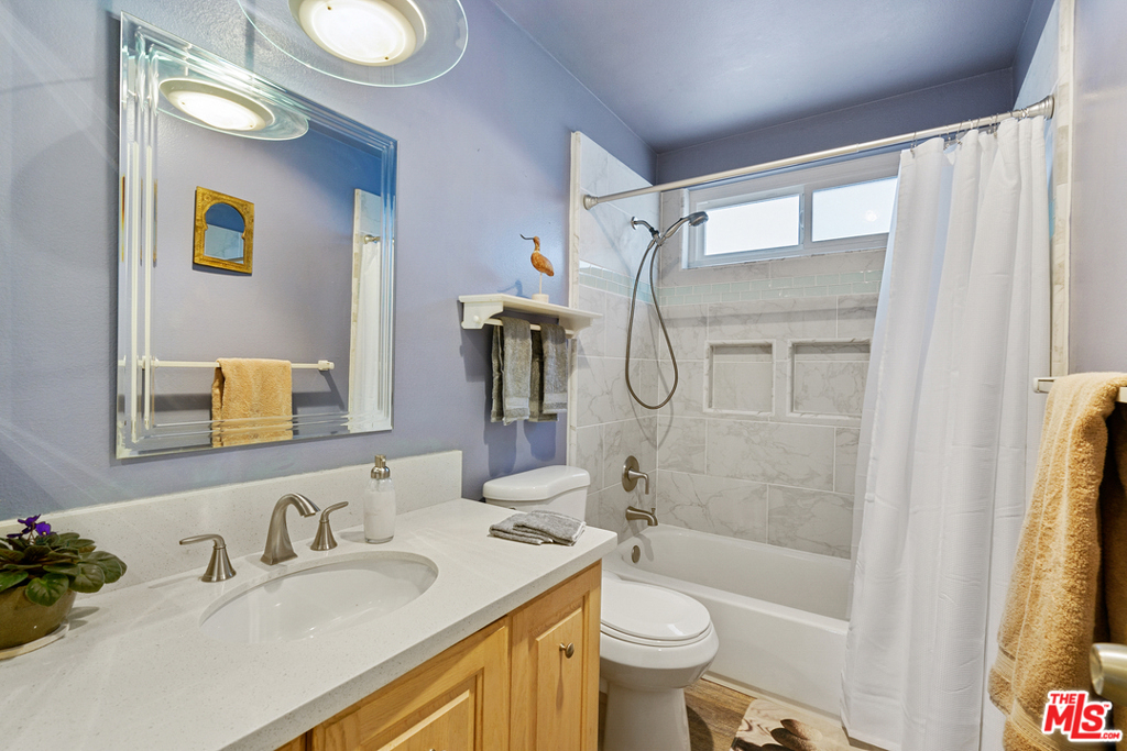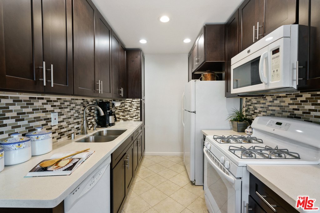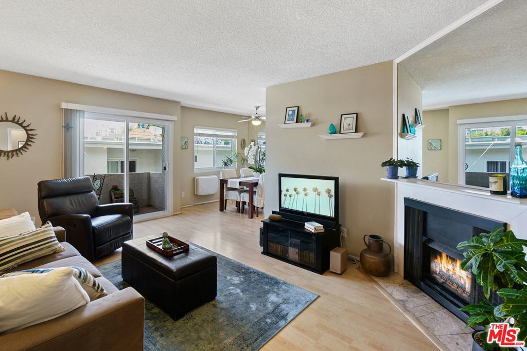 Location, location, location! You'll fall for this charming 1 bd/1 bth top-floor unit tucked away on a quiet tree-lined street, blocks from Santa Monica & Brentwood. Bright & airy condo shows ideal floorplan & boasts lots of natural light. Layout features spacious living room w/ cozy gas fireplace, open dining area & inviting balcony w/ Spanish tile; perfect for enjoying your morning coffee. Updated kitchen shows dark chocolate soft-close cabinetry, Quartz Caesarstone counters & modern glass tile backsplash. Expansive master bedroom features ample closet space & updated bathroom with plenty of natural light. Unit also shows laminate flring, plenty of storage space, heating, new wall A/C unit, ceiling fan & dual pane windows. Well-maintained Santa Monica & Brentwood adjacent building offers secured entry, gated parking w/ large storage unit, communal laundry & LOW HOA dues. Near restaurants, shops, cafs, parks, farmer's market, beach & Expo Line for easy access to the entire Westside.