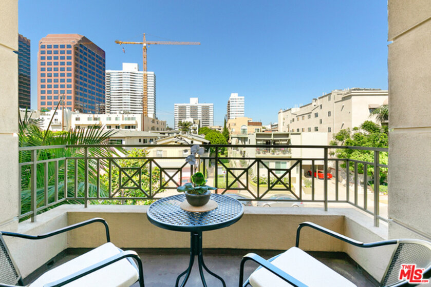 Bright & spacious 3bd/2bth on the 3rd floor. Tasteful open floor plan boasts expansive living room w/ fireplace & dining area that opens to patio w/ incredible views. Gorgeous hardwood floors in common areas & fresh coats of designer paint make this unit turn-key. Galley style kitchen has new Italian tile flooring, granite counters, SS appliances & granite pass-thru to dining area. Master bed features 2 closets, including huge walk-in closet w/ useful built-ins. Master bath has soaking tub, separate shower & dual sinks. Other 2 large bedrooms are across from other full bath. Unit has central heat/AC, in unit W/D, new carpet in bedrooms, plantation shutters & dual-pane windows. Building is situated ½ block South of Wilshire. Includes 2 side-by-side parking in gated garage, 6 guest spots & a communal rooftop deck w/ 360 degree views of Santa Monica to Hollywood. Located near restaurants, shops, parks, schools, the beach, and the Expo Line for easy access to all the Westside.