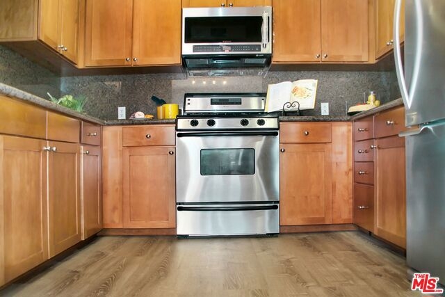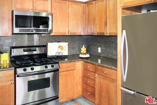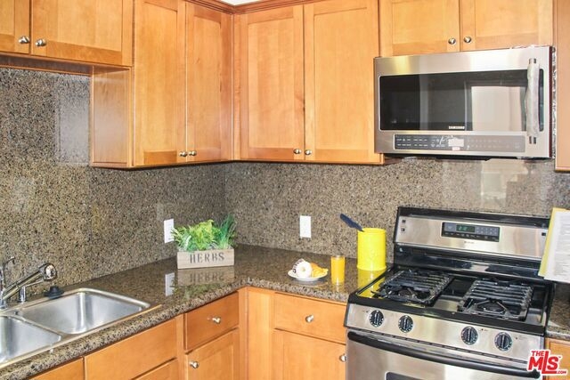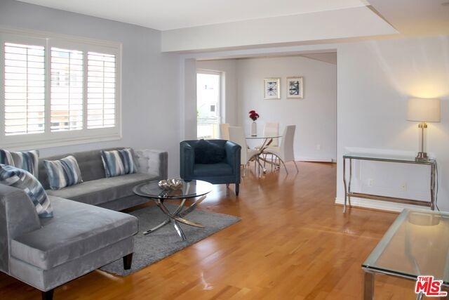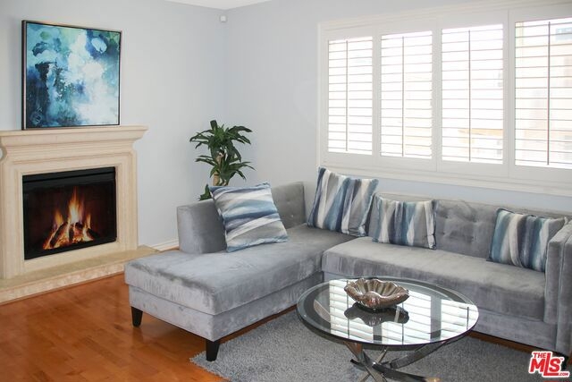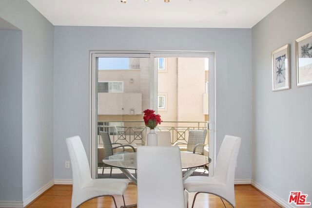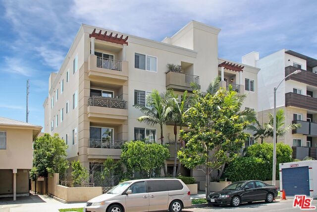 Close enough to Wilshire Blvd. for a quick stroll to the local restaurants, coffee shops, and stores, yet far enough to avoid the traffic and noise. Recently remodeled 3rd floor unit is a secluded corner unit condo built in 2002 with only one common wall. The interior is bright with an open floor plan. The living room and dining area boast hardwood floors, recessed lighting, plantation shutters, a electric fireplace, and a balcony to enjoy long nights or early mornings. The kitchen has classic solid wood cabinetry, granite counter tops & backsplash, dual sinks, and stainless steel appliances. The master suite has it's own walk in closet and balcony accessible through the double french doors with plantation shutters. The master bath has marble tile floors, granite counter tops, double sink vanity, and a spa tub. Each bedroom has new carpet & two closet spaces. 2 parking spaces in large subterranean secured parking. Laundry hookups INSIDE unit. HOA fee includes earthquake insurance.