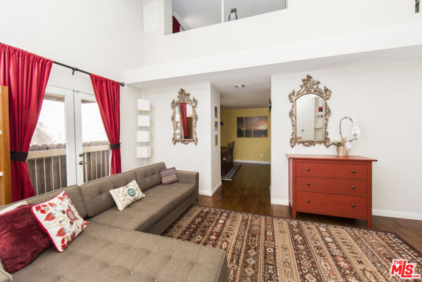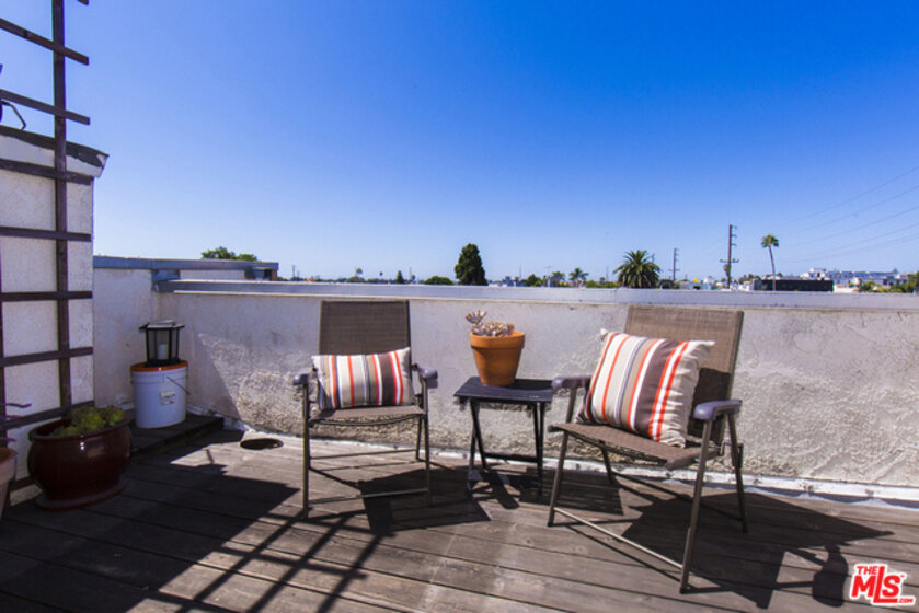 Prime corner townhouse with wood floors and French doors. Excellent indoor/outdoor lifestyle with 3 outdoor areas in a wrap around patio off the dining and living room, a sunny balcony off the master BR and a rooftop sun deck for catching sunsets or some city lights. Well designed fenestration provides abundant natural light. High ceilings in LR and MBR. 3rd BR is a loft. Kitchen has been remodeled. Convenient location near shopping, restaurants, expo line station and park with pool and tennis courts.Most rooms look out to treetops for a zen like feel. 2 car side by side parking in subterranean garage with storage. Inside laundry hookup. This is a must see!