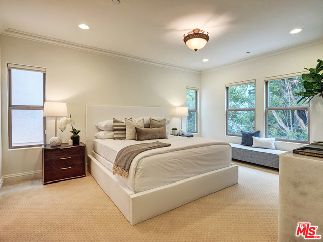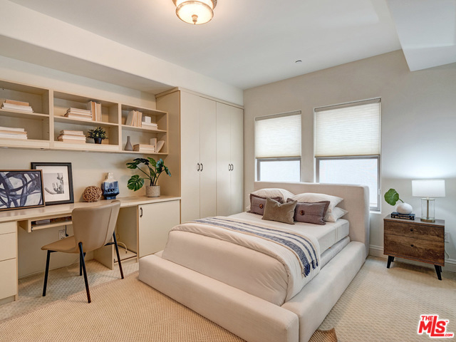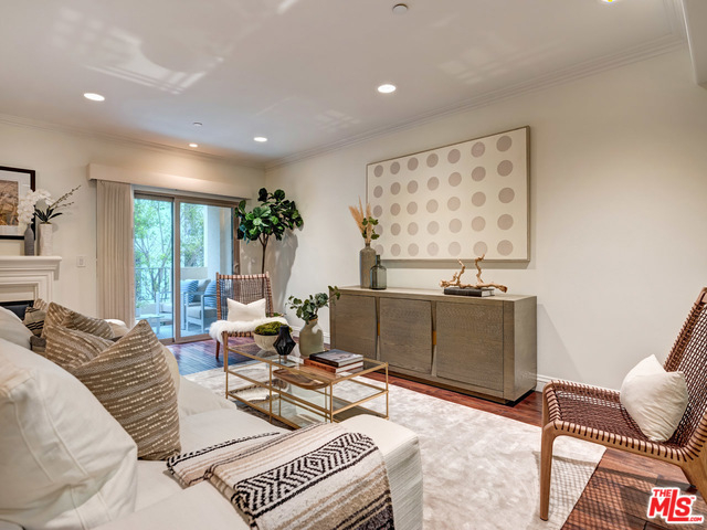 Charm and comfort abound from every corner of this elegant 3 bedroom, 2.5 bath condominium. There is a true sense of arrival when you enter through finely crafted custom doors into the foyer. From there, an open and airy living room with elegant fireplace creates a welcoming environment perfect for entertaining or cozying up with a book. Sliding doors to the private patio extend living areas outwards and bring fresh air inside. Home chefs will find cooking a joy in the well-appointed kitchen, boasting plenty of cabinet space and a generous counter for dining and entertaining. Down the hall, two bedrooms share a full bath, and the master suite boasts a luxe en suite bath with cavernous walk-in closet. A powder room, and in-unit laundry area complete the floor plan. Unit includes dual-car underground tandem parking. Just minutes from UCLA, Westwood Village, and the world-class shopping and dining facilities of Westfield Century City.