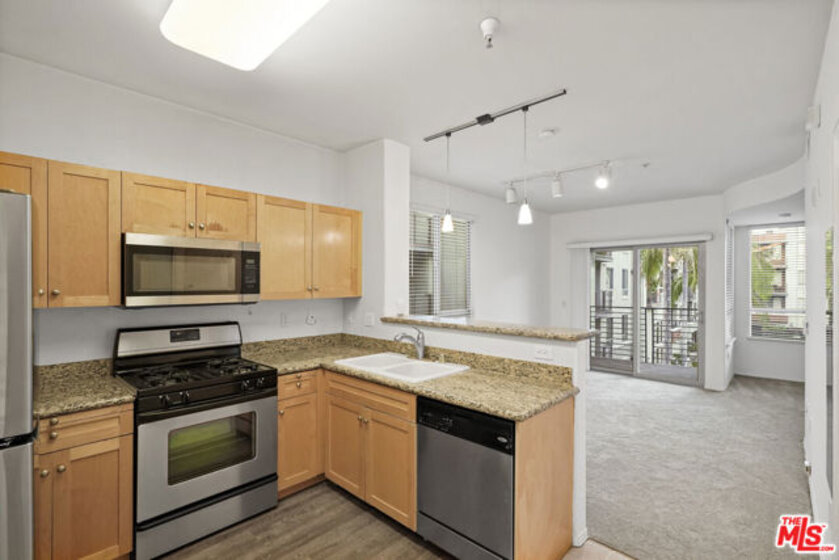 Sun-filled living meets resort-style amenities in this thoughtfully designed Savoy studio overlooking the tranquil pool courtyard and treetops. The open layout is enhanced by a softly curved architectural wall that creates a defined sleeping area while preserving an airy sense of space. Natural light filters in through sliding doors that lead to a private balcony ideal for a morning coffee, remote work in the fresh air, or winding down at sunset. The kitchen offers granite countertops, ample cabinetry, and stainless steel appliances, making everyday cooking both practical and enjoyable. The living space easily accommodates both lounging and dining, while the spacious bath and in-unit laundry add comfort and convenience. Savoy residents enjoy an impressive collection of resort-inspired amenities spread across multiple courtyards, including a sparkling pool and spa, fitness center, sports cafe, business center, conference room, screening room, library, and a rooftop deck with skyline views. Additional conveniences include gated assigned parking, guest parking and a 24-hour attended lobby. Situated at the crossroads of Little Tokyo and the Arts District, this home places you in the heart of one of DTLA's most vibrant neighborhoods surrounded by eclectic dining, cafes, markets, galleries, and cultural destinations. Here, urban energy meets everyday ease.