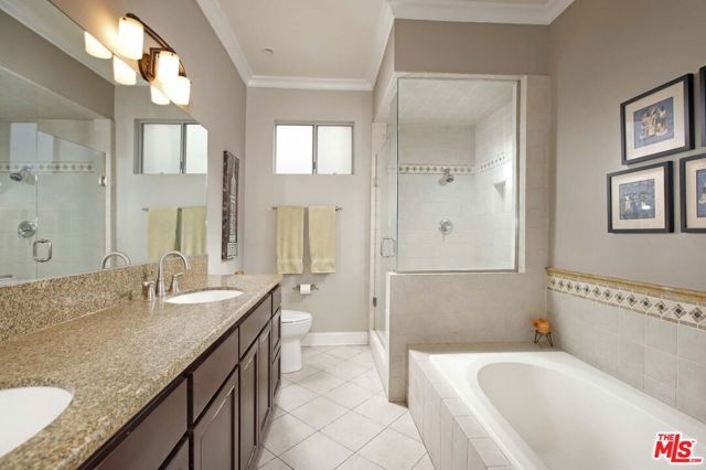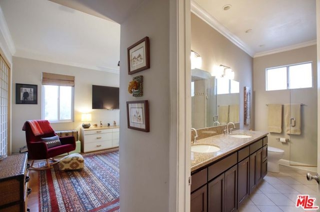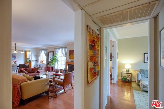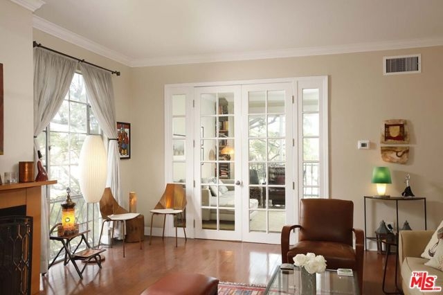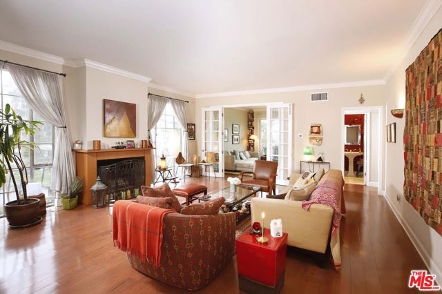 Location, location, location! Spacious 2 bedroom 2 bath condo located in a desirable Beverly Grove location, close to The Four Seasons, Beverly Hills, West Hollywood, Bristol Farms and Cedars-Sinai Medical Center. Charm and sophistication abound throughout the versatile open floor plan, highlighted by crown moldings, rich wood floors, mantled fireplace and is bathed in natural light from the floor up windows. You'll love preparing meals in the gourmet kitchen which features stainless steel appliances and more than ample counters and storage. Highlights of the spacious primary suite include a spa-like bathroom with dual vanity, large tub with separate shower and two very sizable closets with the walk-in leading to the conveniently located laundry room. The equally spacious second bedroom with stylish French doors can also be used as a media room or office, has a large walk-in closet and features a sliding glass door that leads out to a lovely balcony. This unit must be seen and experienced in person to fully appreciate!