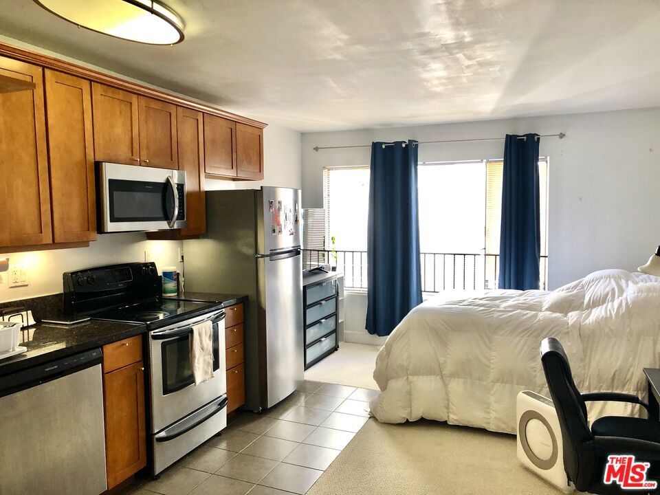 HUGE PRICE REDUCTION! Amazing top floor studio in Westwood Village next to UCLA with lots of natural light. Studio has a full kitchen and full bath. The unit includes a combo wall heater and AC. Carpet, microwave and dishwasher have all been recently replaced in the last 1-2 years. Brand new refrigerator recently replaced as well. Building amenities include a recently remodeled gym along with a rec room/lounge, pool and community washer/dryer room. On-site management office is in the lobby. Unit includes one parking space. Currently tenant occupied with lease until June 17, 2023. See private remarks for showing instructions.