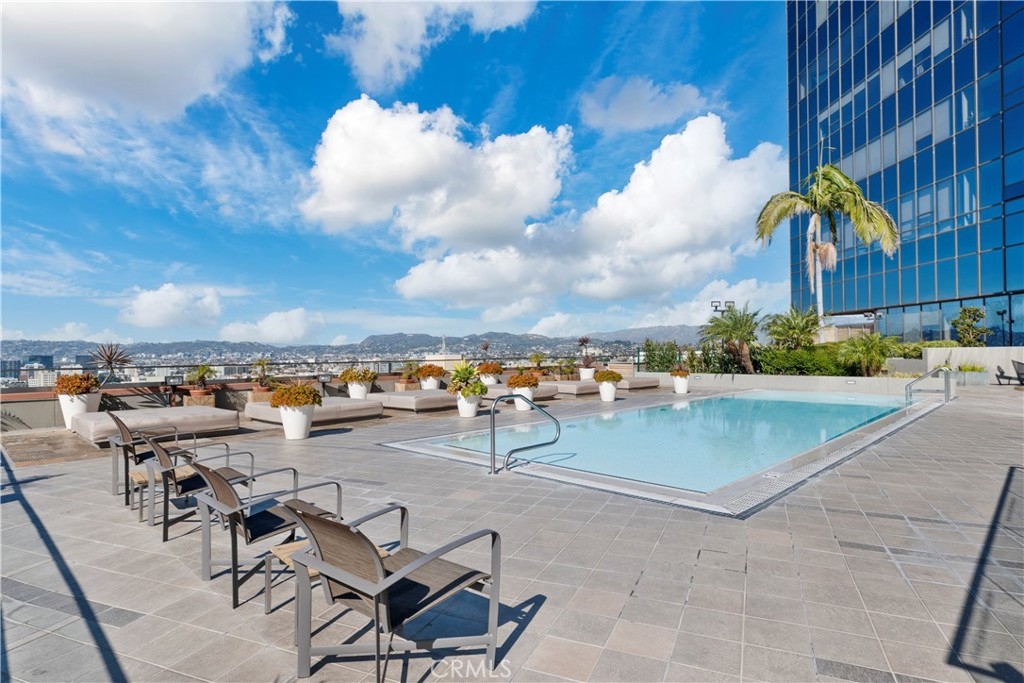 Experience rare luxury living in the heart of Downtown LA with this stunning two-story loft at 1100 Wilshire Blvd. One of only nine exclusive two-level lofts in the building featuring a private balcony, Unit 1707 offers sweeping skyline views and an exceptional indoor-outdoor lifestyle rarely found in DTLA high-rises. This 1 bed, 2 bath loft spans approximately 1,080 sq. ft., showcasing soaring ceilings, dramatic floor-to-ceiling windows, and modern hardwood flooring. The open-concept kitchen features granite countertops, European-style cabinetry, and GE Profile stainless steel appliances. The upper-level bedroom includes a spacious walk-in closet and a spa-inspired ensuite with a soaking tub, dual vanities, and a separate shower. Enjoy unobstructed city views from your private balcony, and take advantage of unparalleled access to resort-style amenities—the unit sits on the same level as the 17th-floor Sky Deck, offering a rooftop pool, spa, cabanas, BBQ area, and fire pit just steps from your front door. Additional features include direct access to the parking elevators, in-unit laundry, and two parking spaces—one reserved with EV charging ready. This full-service building also includes 24-hour front desk/security, a fitness center, conference/media rooms, and a dog run. Located near LA Live, Whole Foods, Crypto.com Arena, and public transit, this rare offering combines modern comfort, urban convenience, and iconic views—perfect for professionals, creatives, or investors seeking a prime DTLA residence.