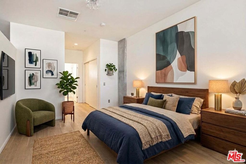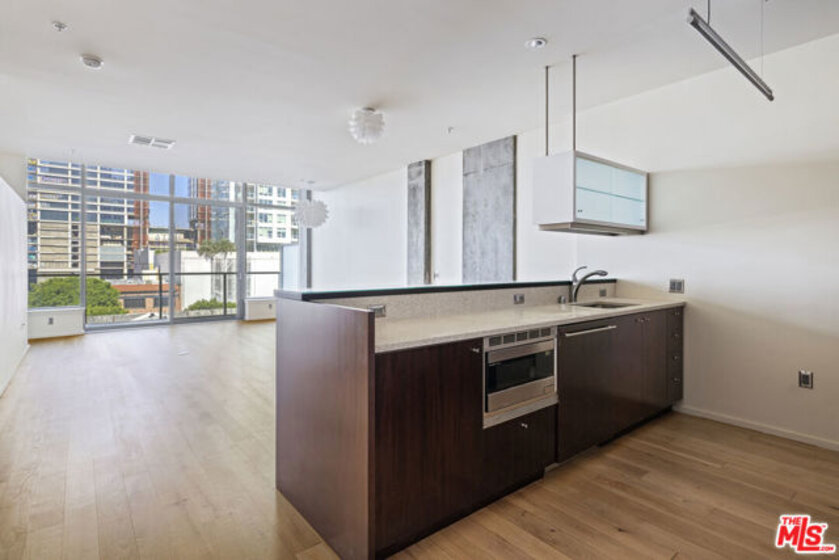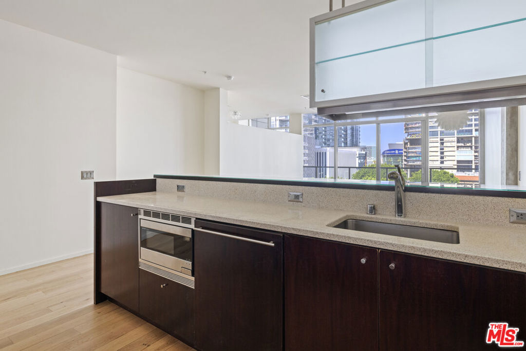 Rare large 2 bedroom plus den/office and balcony @ EVO! Newly refinished wood floors greet you as you enter the home leading to the great room with views of Crypto Center and balcony running the entire length of the unit. Lux kitchen features high end stainless appliances. Laundry room has built-in cupboards. Primary suite boasts large windows, 2 closets and the generous bath has dual vanities and separate bath/shower. TWO CAR PARKING comes with this unit. EVO is a LEED-certified Green Building. Amenities include a state-of-the-art fitness center, a 24th-floor residents' lounge with view terrace and a 6th-floor outdoor terrace with glistening pool, spa, sundeck, BBQ grills, and a full kitchen area with flat-screen TVs. Situated on arguably the best block in DTLA, this vibrant neighborhood features Pine & South Park Pharmacy, Starbucks and more. Plus, you're just moments away from the Crypto.com Arena, LA Live, Ritz-Carlton, and the Pico Metro Station, making commuting a breeze. With a Walk Score of 95 and a Transit Score of 100, you may never need a car again. Downtown LA is undergoing major transformations in preparation for the 2028 Summer Olympics, with billions being invested into development, including new infrastructure and upgrades. Be a apart of the of the Downtown Renaissance.