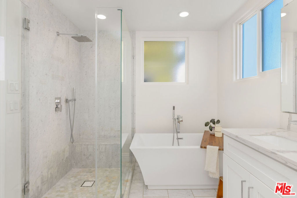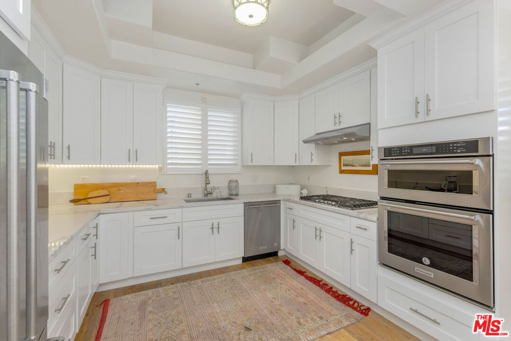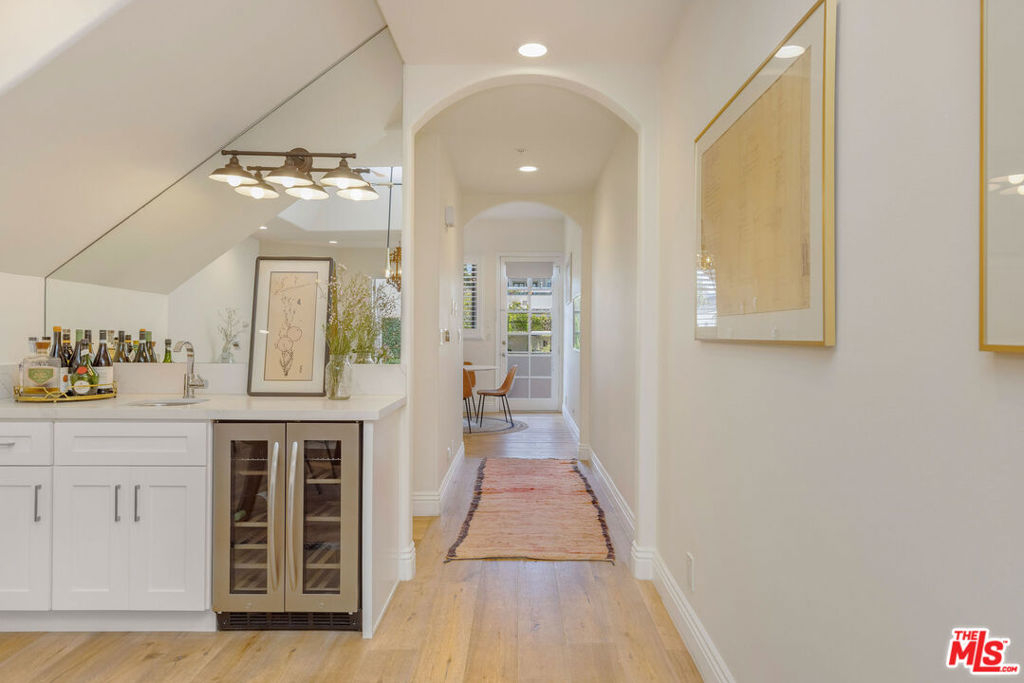 PRICE ADJUSTMENT. This is your opportunity to own a beautiful Contemporary Mediterranean townhome with a sunlit private terrace in one of Brentwood's most desirable pockets. A hard-to-find blend of privacy, luxury, and location, this special residence welcomes you through double mahogany doors into a generous great room anchored by a fireplace. French doors open to a lush garden terrace for seamless indoor/outdoor living in the heart of the Westside. Entertaining is effortless with a chic wet bar featuring a built-in wine cellar and mirrored backsplash. The updated kitchen is crisp and highly functional with stainless steel appliances, quartz countertops, under-cabinet lighting, abundant storage, and a walk-in pantry. Upstairs, the bedroom level is quiet and refined, led by a serene primary suite with a walk-in closet and spa-inspired bath with soaking tub. Two additional bedrooms...one with a walk-in closet, share a Jack-and-Jill bathroom, ideal for guests, family, or a home office. Wide-plank floors, recessed lighting, in-unit laundry, and gated parking complete the package. Enjoy a flat, easy stroll to San Vicente's cafes, dining, fitness studios, and the Sunday Brentwood Farmers' Market, plus quick access to Brentwood Village, Barrington Rec Center, and nearby parks. Located within highly regarded LAUSD 90049 school options. HOA covers building maintenance, building insurance, water, and common-area electricity.