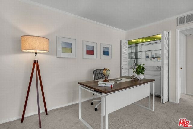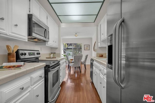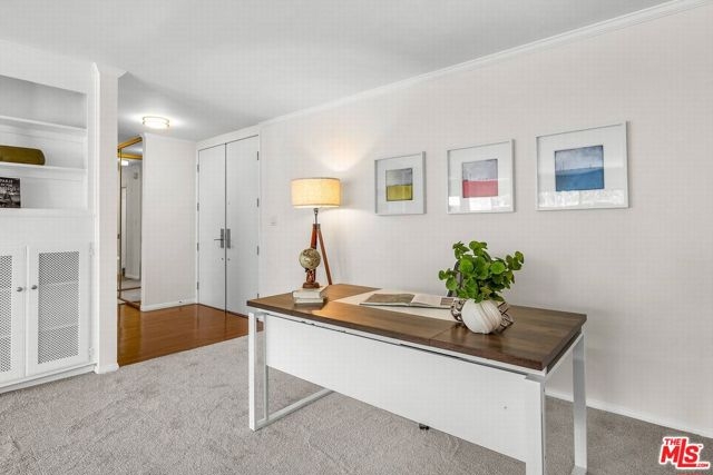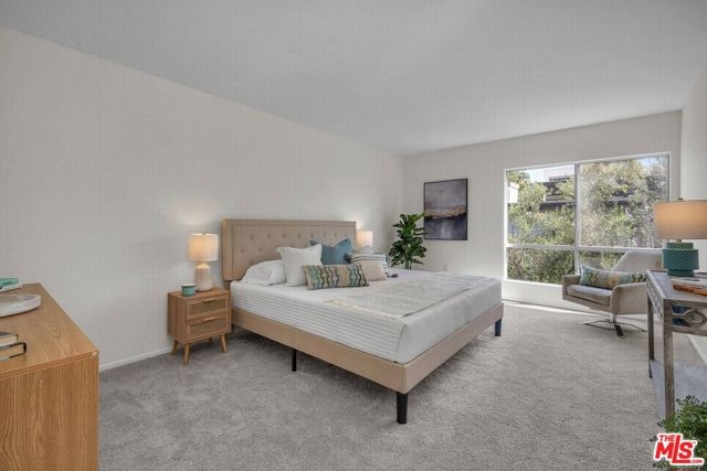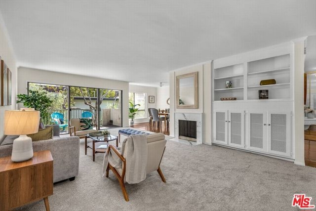 A RARE opportunity to own a TOP FLOOR, spacious and bright 2 bedroom 2 bath unit in one of Brentwood's most sought after high-end luxury buildings. A MUST SEE! The first two bedroom available in the building since 2022! This quiet rear facing unit features a fantastic center hall open floor plan with a expansive living room with high ceilings, fire place and wet bar and an elegant dining room, leading to an ample balcony with unobstructed tree top views. The dining room could be be closed off to be converted to a den or home office. Great for entertaining or enjoying leisurely dining. Two large bedrooms located at opposite sides of the unit for privacy, both with ample walk-in closets. Galley kitchen with newer stainless steel appliances. Closets galore throughout the unit. Fresh interior paint and brand new carpet in bedrooms and living room. Additional features include two side-by-side parking with an assigned storage unit in the garage. Community laundry is conveniently located close to the unit. This secured complex offers a resort lifestyle with pool, BBQ area, recreation room with shower/sauna, peaceful courtyard, and a beautifully updated common area that feels like a boutique hotel. EV stations are in the process of being installed. In a Prime Brentwood location just steps away from Sunday's Farmer's Market, top restaurants, stores, and coffee spots.