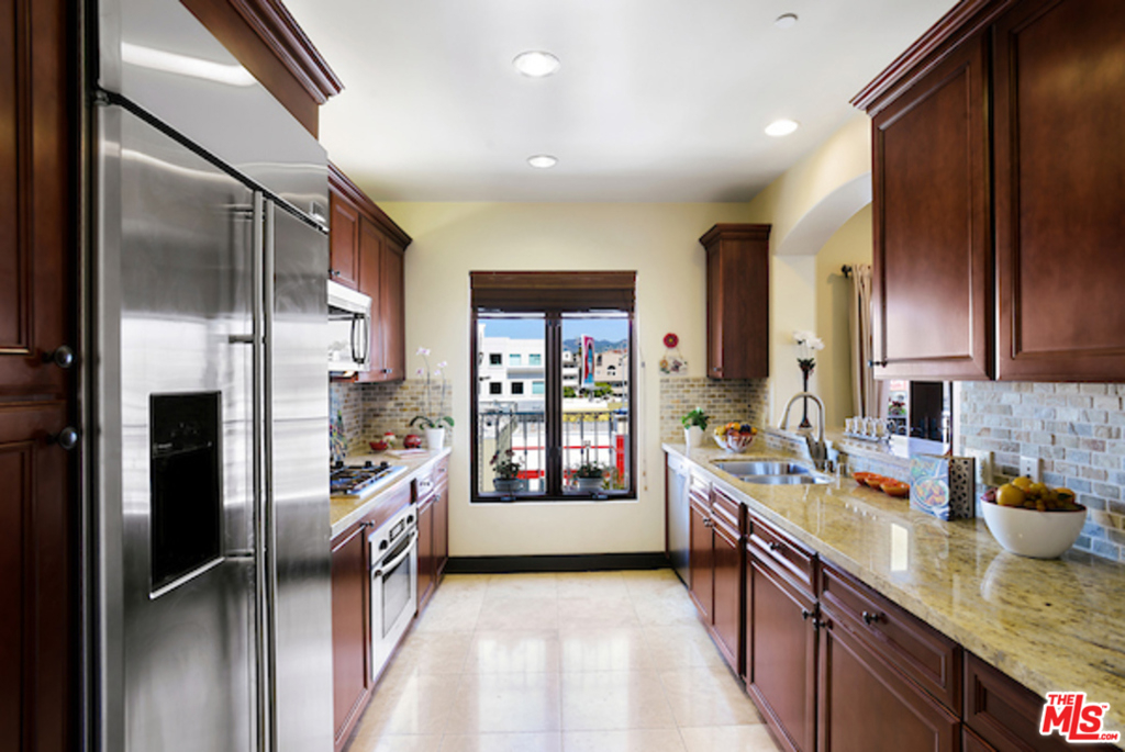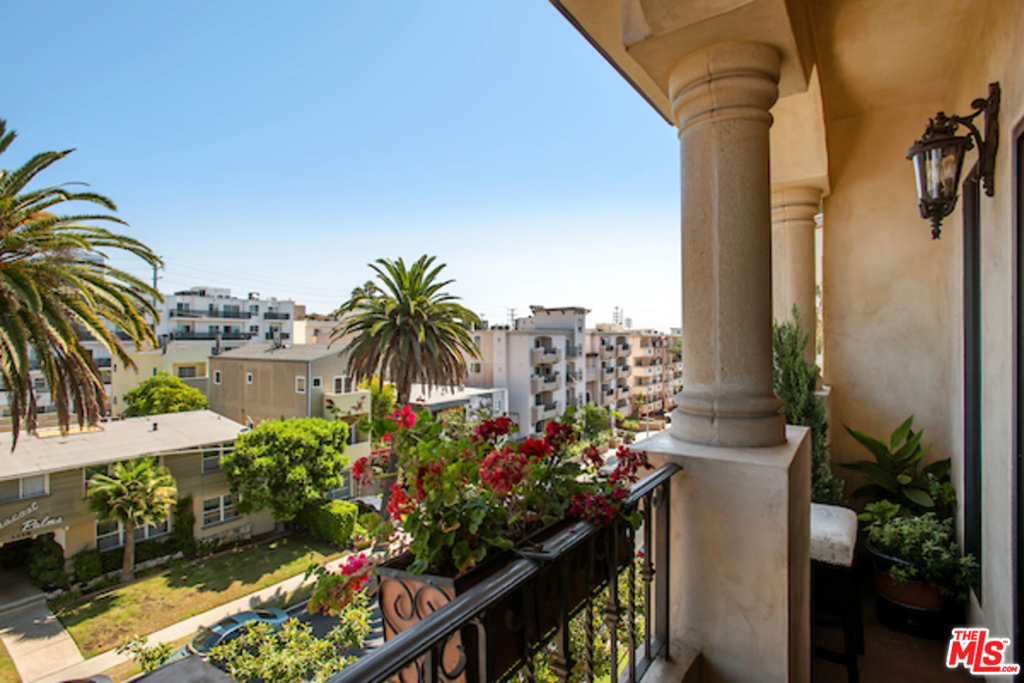 Exceptional Tuscan Architectural Brentwood Adjacent Penthouse Condo. Top floor corner unit w/breathtaking panoramic views of mountains, city lights & Getty Museum. Highest & finest quality finishes featuring archways, wide planked distressed wood & travertine flooring. Elegant living area w/ lots of natural light surrounded by French doors & pvt balconies w/ Mediterranean arches, columns & flower beds. High ceilings w/ recessed lights, dual pane windows & glass doors. Dramatic entry way & spacious hallways, gourmet kitchen w/ granite countertops & stone tile backsplash. S/S appliances w/ custom cabinets & breakfast bar. Separate pvt office alcove, washer/dryer in closet, central heat/ac. 2nd bedroom w/lrg closet, sitting area & custom shades. Luxurious master suite w/ lrg walk in closet, baths w/ travertine. Master bath w/ double sink, separate tub & shower & vanity area. Easy access to elevator & trash. 2 side by side parking w/ security cameras. Short stroll to shopping & restaurants