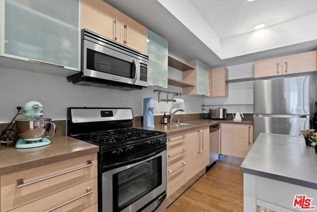 *Recently Fannie Mae Approved Building* Modern Comfort in the Heart of Downtown LA Vero Living at Its Finest. Welcome to Unit #433 at the coveted Vero community a sleek and stylish 1-bedroom, 1-bathroom condo offering 700 square feet of contemporary living in one of Los Angeles' most vibrant urban neighborhoods. Thoughtfully designed with clean lines and natural light, this unit features an open-concept layout complemented by rich hardwood floors, high ceilings, and expansive windows that invite warmth and brightness throughout the space. The modern kitchen boasts European-style cabinetry, stainless steel appliances, and ample quartz counter space perfect for cooking or entertaining. The spacious living and dining area flows seamlessly into a private balcony, creating an ideal indoor-outdoor lifestyle. The bedroom offers a peaceful retreat with a custom closet and a bathroom adorned with sleek finishes. Additional highlights include central air conditioning for year-round comfort and an in-unit washer and dryer for everyday convenience. Enjoy two assigned gated parking spaces and access to Vero's top-tier amenities, including a resort-style heated pool and spa, 24-hour fitness center, dry sauna, yoga/dance studio, business center/library, barbecue areas, concierge service, and 24-hour security. Water and trash are included in the HOA dues. Ideally located on Wilshire Blvd, Vero offers quick access to LA Live, Crypto.com Arena, Koreatown, the Financial District, and a world of shopping, dining, and entertainment options. Whether you're seeking your first home or an investment opportunity, Unit #433 blends luxury, comfort, and convenience in the heart of the city. Fannie Mae Approved Building.
