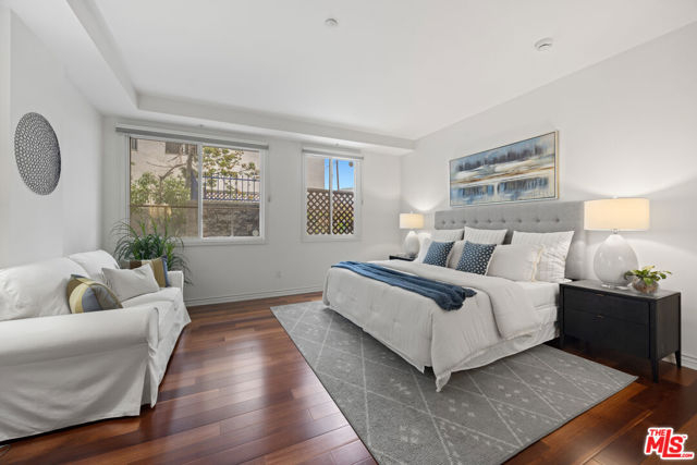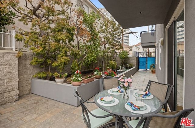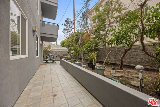 Discover this spacious and sophisticated 2 bedroom, 2 bathroom condo tucked on a quiet, tree-lined street in one of West LA's most desirable pockets, just minutes from both Santa Monica and Brentwood. The smart, single-level layout offers ideal separation between the two bedrooms, with the primary and guest rooms located on opposite ends perfect for privacy, hosting guests, or shared living. The open-concept living and dining area features laminate wood flooring, a cozy gas fireplace, and access to an expansive patio area for entertaining or relaxing. The kitchen is equipped with granite countertops, stainless steel appliances, and generous cabinet space. The primary suite includes a large walk-in closet and a spa-like bathroom with dual vanities, a soaking tub, and separate shower. The guest bedroom features a custom closet and easy access to the second full bathroom. Additional highlights include in-unit side-by-side laundry, central heat and air conditioning, and two gated parking spaces. The well-maintained 12-unit building also offers secure entry, guest parking, and a 3'4" x 5'10" private storage. HOA dues include water, trash, sewer, and earthquake insurance. The building is walking distance to Wilshire and Santa Monica Blvd, near top restaurants, shops, cafes, parks, and the Expo Line, this one checks all the boxes for prime Westside living.