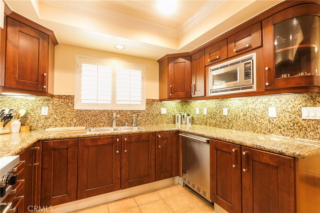 Immaculate and Spacious Armacost Chateau Rear End Unit Built In 2005. Gleaming wood floors, recessed lighting, plantation shutters, crown molding, HVAC, and an abundance of storage throughout. Gourmet kitchen featuring dark shaker cabinets, granite counters, Viking 6 burner convection stove, Viking dishwasher, wine fridge, GE microwave, and LG fridge. Living room is open to the dining room and is highlighted by an electric fireplace and 70” LED HDTV with sound bar. Enjoy the outdoor balconies off the living room, and two of the bedrooms. Side by side washer/dryer located in hallway. Plush carpet in each bedroom. Second bedroom has a huge walk-in closet with built-ins. Enormous master bedroom suite includes dual closets in addition to a walk-in closet, and a sumptuous bathroom with separate soaking tub and shower and dual vanity sinks. Comes with 2 subterranean tandem parking spaces. All this in a gated complex with elevator, common area courtyard and rooftop patio, recreational room, and plenty of guest parking spots. Minutes from Westwood/UCLA, VA, Sawtelle, Brentwood, Santa Monica, notable restaurants and fitness studios, and all the best things the Westside has to offer. 87 Walk Score!