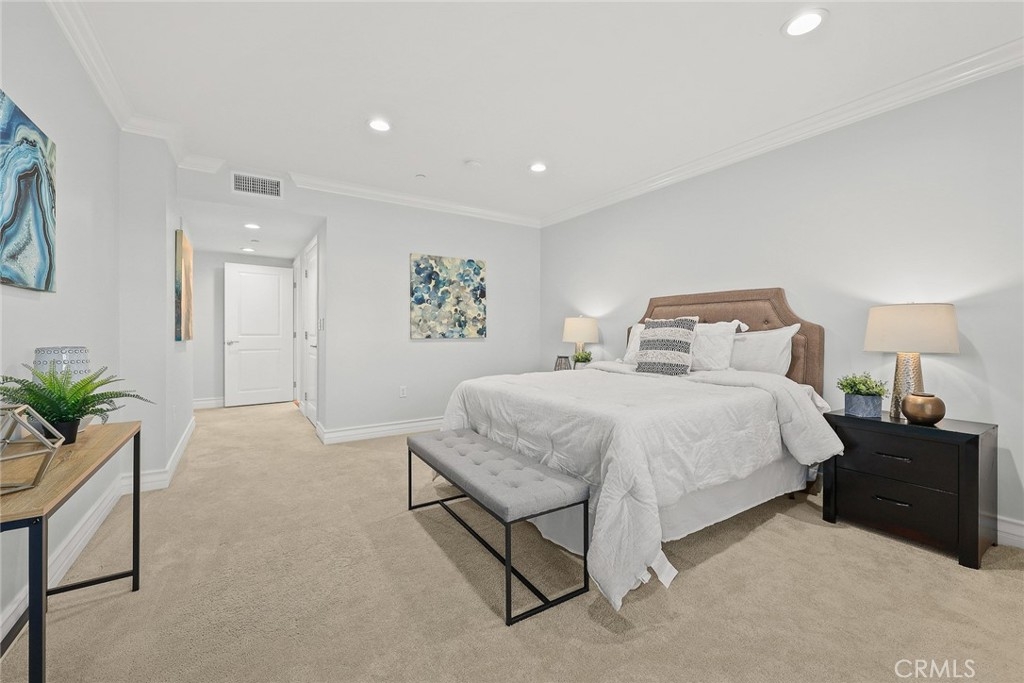 A RARE opportunity in prime Brentwood adjacent location! This front-unit PENTHOUSE offers 3 spacious bedrooms, 2.5 bathrooms with spectacular views of the city and ocean. An open layout and seamless access to two private balconies. It offers solid wood flooring, plantation wood shutters, crown moldings, double-height baseboard, and lots of natural light. Brand new carpet, designer paint and LED recessed lights. Living room is open to the kitchen and has an inviting fireplace. The chef’s kitchen has granite countertops, custom cabinetry, breakfast bar, and top-of-the-line appliances (Viking 6 burner stove, Viking wall hood, Viking dishwasher, Jenn-Air refrigerator and U-Line wine cellar.) Oversized master bathroom with travertine shower, soaking tub, dual vanities & large walk-in closet. This is one of the few units that have non-tandem parking. Inside side-by-side laundry area. Washer/dryer included. Amenities include secured entry, gated subterranean garage, extra guest parking, rec room, and sundeck for summer nights. Fire and earthquake insurance is included in the HOA due. Santa Monica Beach is nearby along with Montana Avenue, Westwood, museums, trendy coffee shops, and many great restaurants. Close to Whole Foods, Trader Joe's, Bristol Farms, Ralph's, Amandine, and Literati Cafe. This is the one you've been waiting for!