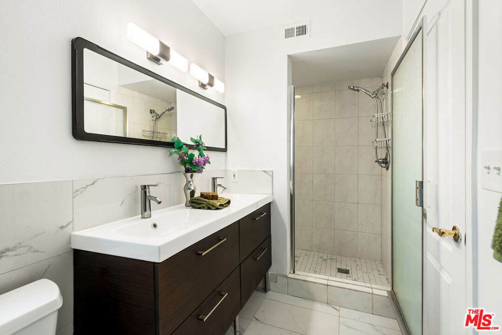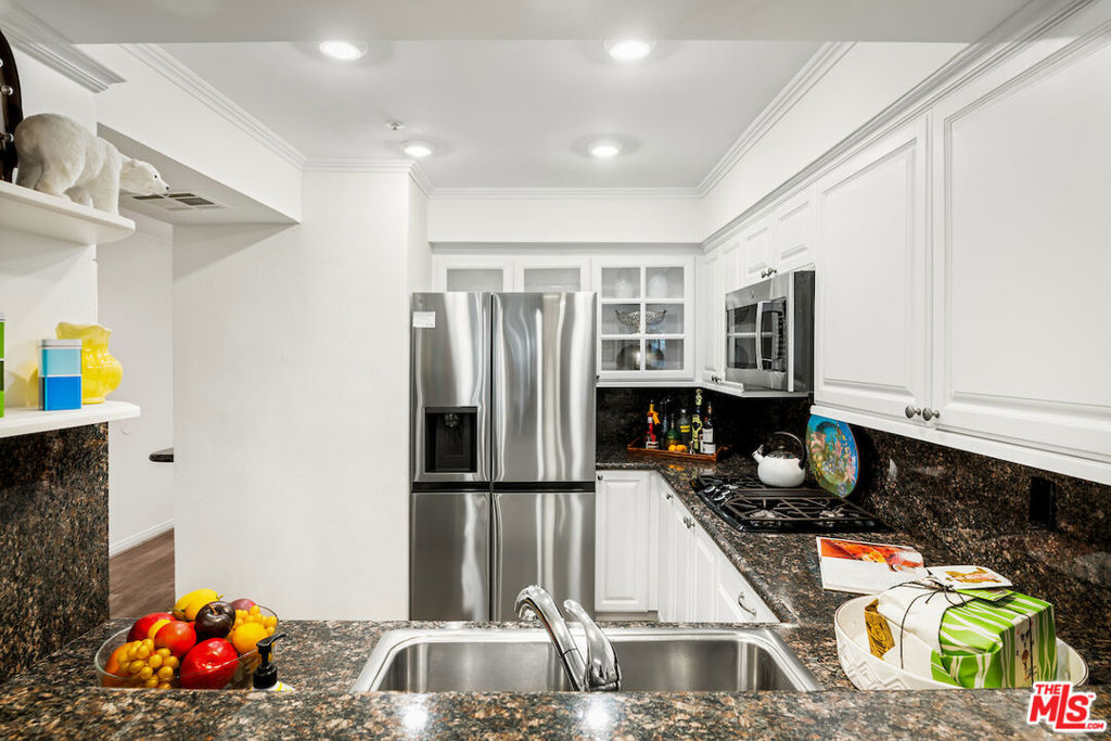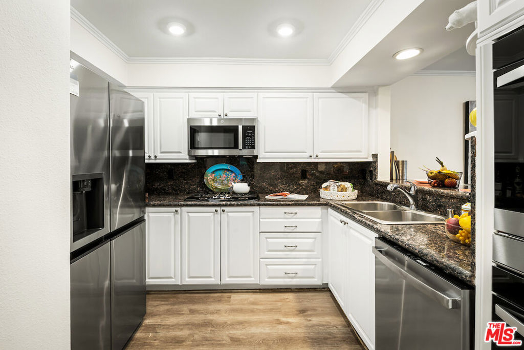 Amazing Brentwood Adjacent Condo with Expansive Private Patio. Secluded 3 Bedroom + 3 Bath unit with apprx. 1400 sqft. This single level unit is located in a quite rear location w/only one common wall. The Federal Plaza was built in 1991only a stone's throw away from Brentwood. Extremely spacious private patio, complete with mature fruit trees and tasteful vinyl flooring flows throughout the condo. Enjoy the feeling of openness and ample space in the living room. Granite fireplace in the living area provides a cozy ambience. The kitchen equipped with brand-new stainless steel appliances and granite counter tops, Lots of cupboard space and breakfast bar. Central heat and ac, Inside laundry and recessed lights. Abundant greenery views in all rooms ensuring privacy in all rooms, Generous size secondary bedrooms with sitting area, Tastefully remodeled bathrooms with modern. finishes. Expansive en-suite primary bedroom with ample closet space. Luxurious primary bath with separate spa tub, walk-in shower and dual vanities. This condo complex features a warm and inviting lobby, enhanced by lush greenery. Amenities include a 2 car secured parking plus lots of guest spots. Enjoy the vibrant Sawtelle Blvd scene, just moments away. Close to UCLA, Santa Monica, Century City and Beverly Hills