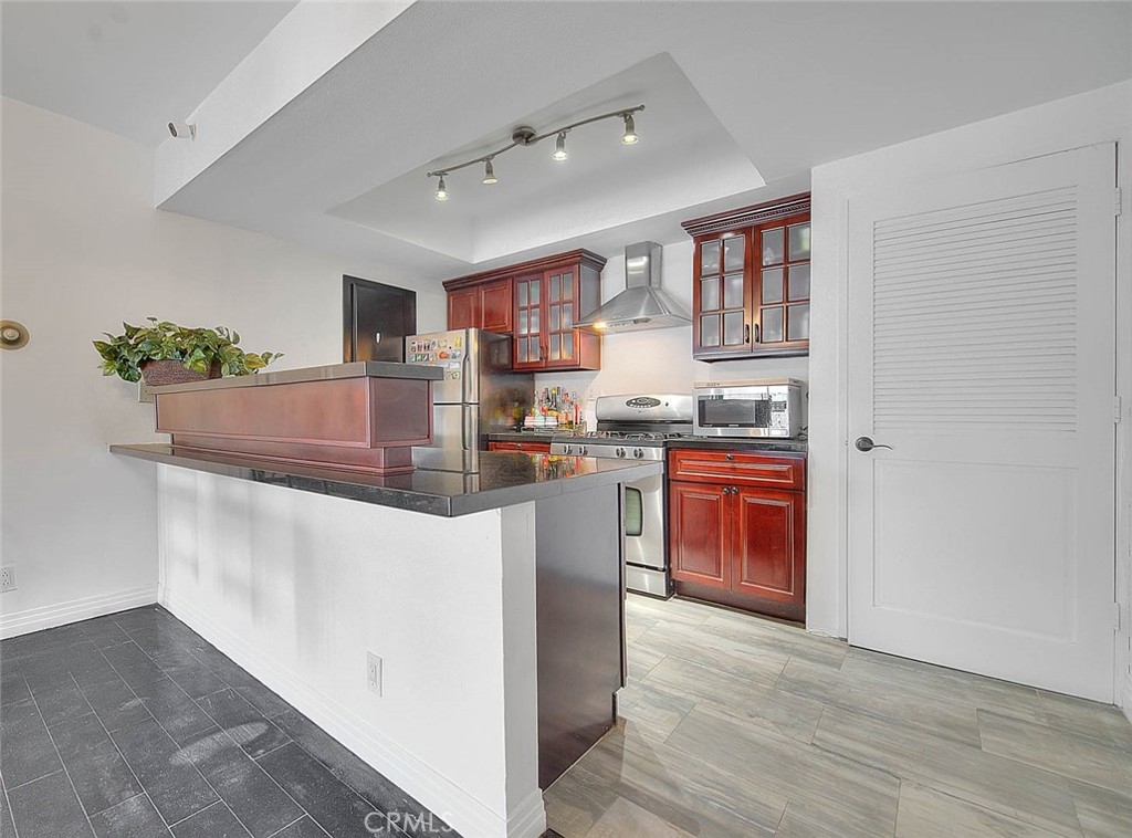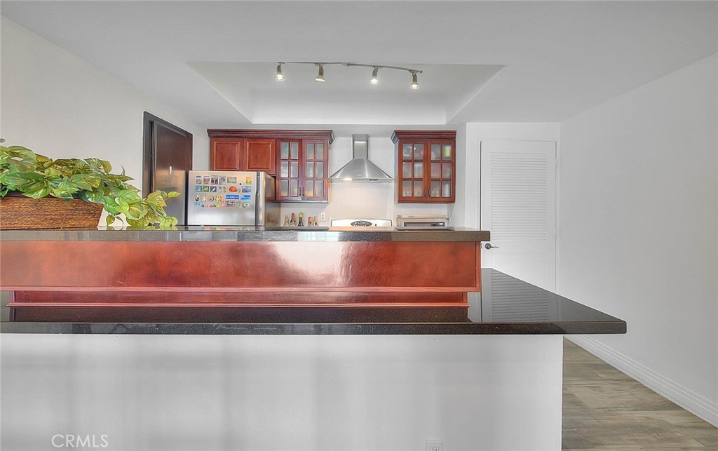 Brentwood Adjacent is also one of the nicest on the market. This is a true value and a score. This 2 bedroom and 2 bathrooms open floor plan condo dazzles with a sophisticated modern chic design that will make you content for years to come. The custom stucco fireplace is a high-end touch you will surely enjoy as both a heat source and design element. The two bathrooms with newer floating grey vanities on-top of newer laid white tile floors. The kitchen has granite countertop and mahogany cabinets. The small 8-unit low rise building offers low, stable HOA fees and includes amenities such as a large sauna, exercise and rec room, two-car parking, and extra storage. Closed to UCLA and Santa Monica pier.