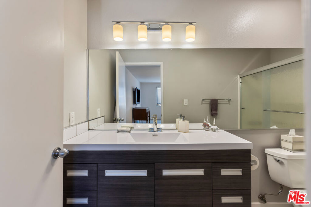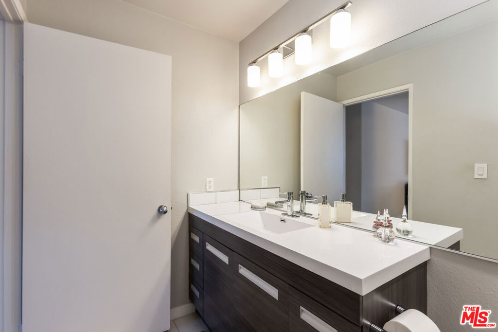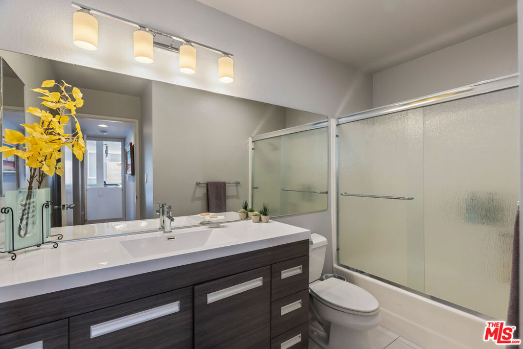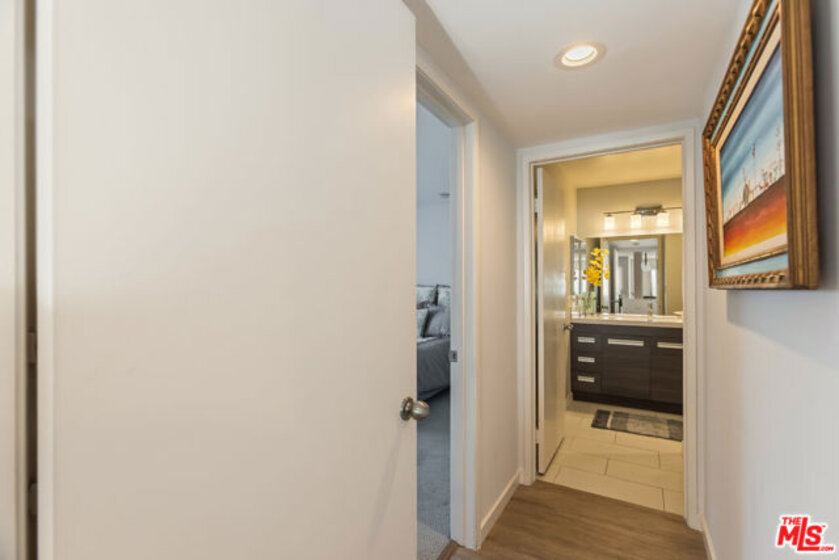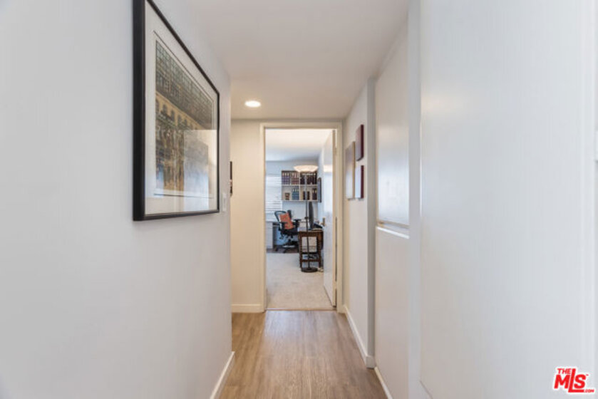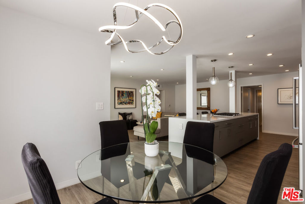 Chic, updated, single-level, top floor, private, corner unit condo with serene treetop views. The Westwood Bentley is an intimate 14-unit building on a charming tree lined street. This "done" light filled, 3 bedroom, 3 bath bright residence offers a rare opportunity to own a perfectly designed layout with a calm, zen-like feeling with no neighbors on either side. The beautifully renovated kitchen is a focal point and a cooks dream, featuring a striking waterfall island, soft close cabinetry with pull outs, Legrand pop up outlets and a premium KitchenAid appliance suite. The open concept flows seamlessly into the living and dining area ideal for both entertaining and everyday living-while a private balcony provides the perfect spot for a morning cup of ambition. Additional highlights include, recessed lighting, Hunter Douglas Silhouette coverings, vinyl plank flooring in the main living areas, dual pane windows, Central HVAC system, ample closet space, a gas fireplace and carpeting in the bedrooms. All bathrooms and kitchen were remodeled in 2021. The first bedroom offers privacy with its own en suite with full bath and separate entry, perfect for guests or extended family. Down the hall, a spacious second bedroom (currently used as a home office with built in dual desks) sits adjacent to another bath. The Primary suite is tucked in the rear and features a walk in closet and a beautifully updated full bath. The building is ADA compliant, has controlled access gated garage parking and a convenient storage closet located on the same floor as the unit. Enjoy an unbeatable location with a high walk score just minutes away from shopping and dining nearby. A short drive to UCLA, Sawtelle, Westfield Century City, Westwood and Brentwood Village, Bristol Farms, Trader Joe's and the Beach with easy freeway access. This is Westside living at it's best.