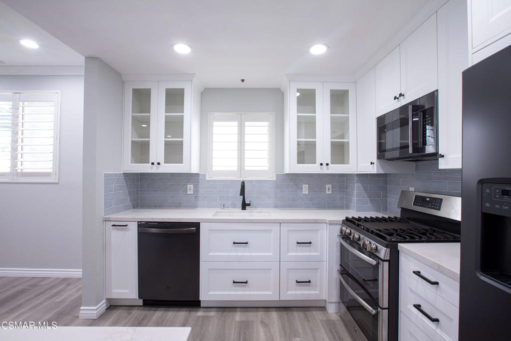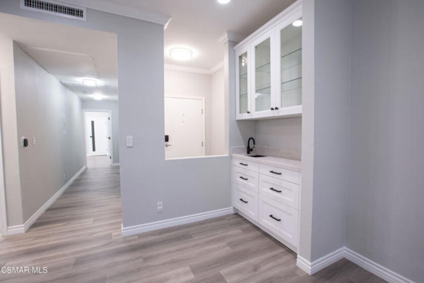 Amazing condo in highly desirable West LA. Next street over are upscale restaurants and shopping. Extremely desirable floor plan that has been completely remodeled. As soon as you walk in, you'll fall in love. This 2 bedroom, 2 bathroom, approximately 1,200 sq ft is loaded with charm and elegance. The kitchen has all new appliances, including refrigerator and microwave. Italian quartz, tile backsplash, lots of counter space and storage for all your pots and pans. Shutters give you privacy or light, when needed. New doors, vinyl flooring throughout, crown molding, laundry and storage in the hallway are obscured with beautiful modern folding doors. Master bedroom has a walk-in closet with built in shelving, both bedrooms are a nice size, ceiling fans, each with its own slider to the outside. The secondary bedroom has a large mirrored closet. The spa like bathrooms are beautiful and equipped with rain shower heads, modern toilets, marble tile & glass shower doors. The living area is equipped with a wet bar and fireplace. A quaint patio area is located at front, with a shady sitting area. Gated entrance for added security, underground parking garage with two spaces, storage area, elevator and lots of charm make this home so enticing. Ideal location and close to everything. Easy access to freeways. Don't let this one get away.