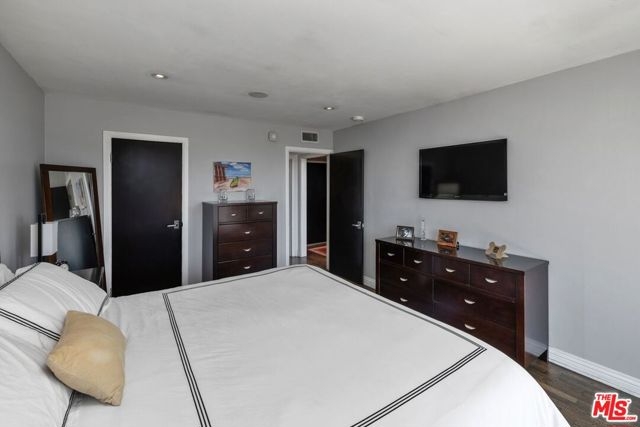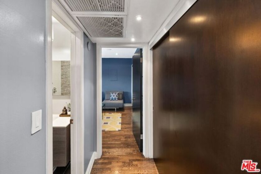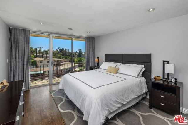 Welcome to a charming unit at the base of Hollywood Dell in the Hollywood Hills. This bright and sunny two-bedroom, two-bathroom unit features an open floor plan with spacious dining and living area, hardwood floors and central air/heat. The remodeled kitchen has beautiful green Ann Sacks tiles, white granite counter tops, spacious built-in cabinets and stainless-steel appliances. The balcony is perfect for al-fresco living and relaxing under the city lights. The primary suite offers beautiful views of the Hollywood Hills and a large walk-in closet. Primary bathroom was remodeled with Porcelanosa ceramic tiles in the shower, Porcelanosa European style toilet, Porcelanosa mirror, and marble countertop with floating dual sinks. Second bedroom suite is ideal for roommate, guests or a home office. The second bathroom has custom granite countertop and Porcelanosa tiles in the shower. The unit is conveniently located near Hollywood's nightlife and restaurants, Los Feliz, and Silver Lake, easy access to local freeways. This unit is close to The Oaks Market, Daily Planet, Gelson's, Trader Joe's, and El Capitan & TCL Chinese movie theatres. Enjoy nearby hiking trails at Bronson Canyon, Fern Dell Nature Trail, Hollywood Reservoir, and Griffith Park. The building's amenities include a heated pool, bike storage, barbecue area and lounging deck. HOA includes water, trash, gas and AC electric. A rare gem to call home has everything you need at your fingertips.