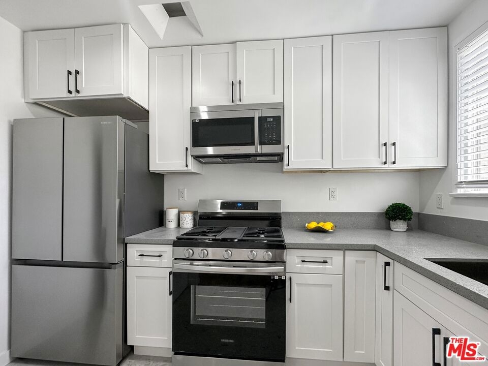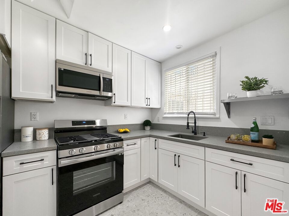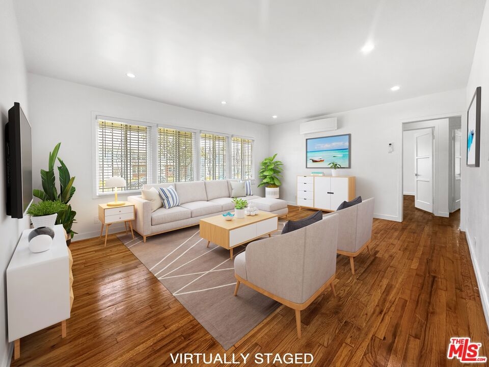 Welcome home to this Vibrant + Reimagined 2bd1ba Inglewood adjacent condo less than 1 1/2 miles to the Kia Forum & Sofi Stadium. You will be greeted w/ a bright & spacious living room and gleaming original hardwood floors. Absolutely no expense has been spared with a multi-split air system in both bedrooms and living room, tankless water heater, smooth ceilings, and recess lighting. Cook your gourmet meals in the modern kitchen w/ shaker cabinets, quartz countertops, sparkling stainless-steel appliances including counter-depth refrigerator, gas range, and microwave. The home is also equipped with a stacked washer and dryer. Bathroom has been remodeled with modern soaking tub, polished porcelain wall tiles, modern glass shower door, and a floating vanity. Bedrooms are spacious with large wall closets and modern sliding closet doors. Newer dual pane windows, private 1 car garage, front and back entrances, ample street parking, and low monthly HOA. Quality living at an affordable price. Come view it while it is available!