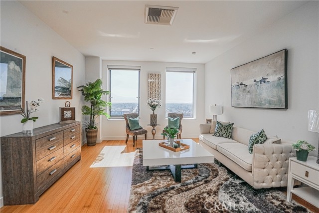 Experience modern urban living at The Mercury, located in the heart of Los Angeles. This luxury loft-style condo offers the perfect opportunity for those seeking a stylish live/work space — ideal for professionals or small business owners looking to combine home and office in one sophisticated setting. The open loft layout features wood flooring throughout, soaring high ceilings, and a stunning south-facing view of the iconic LA skyline. The spacious closet and full bathroom with a tub, ample storage, and a large mirrored medicine cabinet add both function and convenience. Enjoy resort-style amenities including concierge service, a rooftop pool, BBQ area, and fitness center, all with breathtaking city views. Perfectly situated across from the Metro station and near the Financial District, this location offers unbeatable convenience with endless dining, shopping, and entertainment options all within walking distance. Be creative — this home office concept could be your next smart investment and a cost-saving solution in one of LA’s most vibrant neighborhoods.