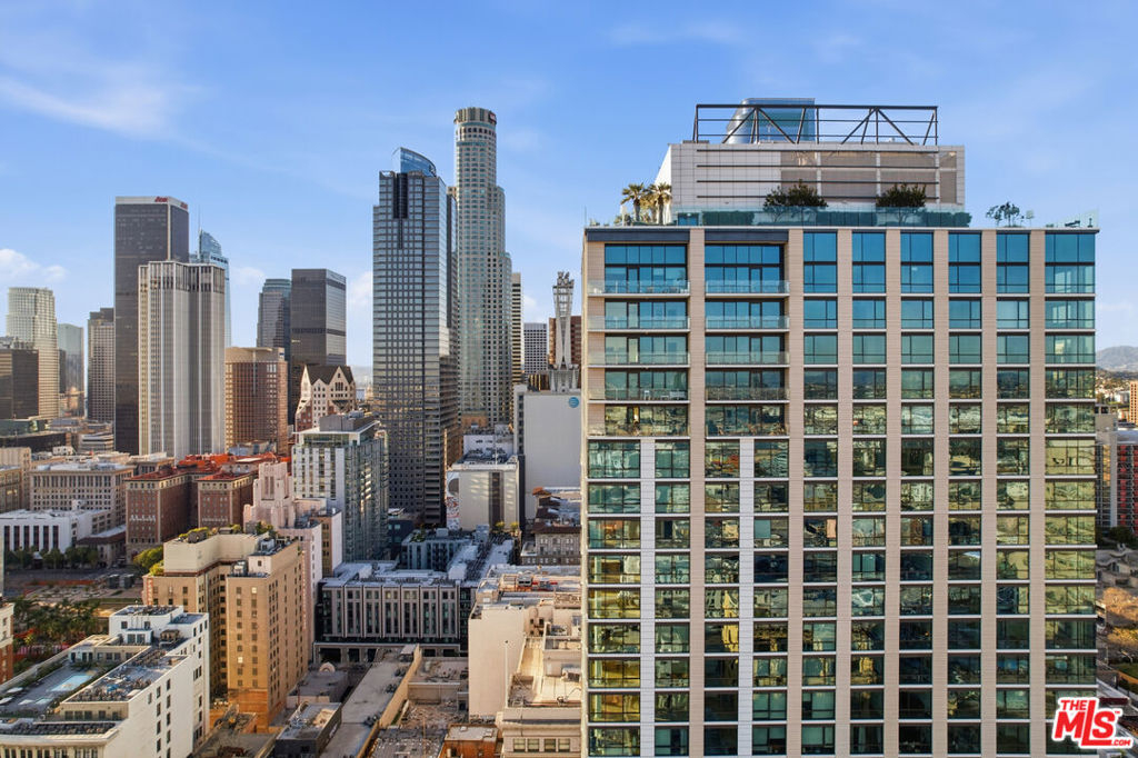 Perched above the storied Broadway corridor, The Perla Retreat, Residence 913 at Perla on Broadway delivers refined, hotel-inspired living in the heart of Downtown Los Angeles. Built in 2021 and rising 35 stories, Perla is a modern architectural statement that blends global design pedigree with the energy and culture of DTLA's historic theater district. This expansive one-bedroom, one-bath residence spans 919 square feet, offering a noticeably larger footprint than comparable homes currently on the market. Open-concept interiors are wrapped in European white oak flooring and filled with natural light, creating an airy, calming retreat above the city. Floor-to-ceiling windows frame dynamic skyline views stretching toward the Hollywood Hills, with distant ocean horizons visible on clear days. The kitchen and living areas flow seamlessly, ideal for both daily living and elegant entertaining. A generous primary bedroom features a spacious closet and custom motorized blackout shades for complete privacy and comfort. Additional highlights include a full-size Bosch washer and dryer, energy-efficient LED lighting, and pre-wiring for high-speed fiber optic connectivity. At the heart of the building is Perla's signature four-story indoor atrium, an architectural centerpiece inspired by Broadway's historic theaters and flooded with natural light. More than 44,000 square feet of amenities extend the living experience far beyond the residence, offering a true boutique hotel lifestyle. Residents enjoy an attended lobby and lounge, state-of-the-art fitness and yoga studios, private theater, library, and workspaces, meeting rooms, wine tasting room, private dining room, gaming lounge, and multiple indoor-outdoor entertaining areas. Outdoor spaces are equally impressive, including an 11th-floor pool terrace with spa, fire features, open lawn and pet run, as well as a spectacular 36th-floor rooftop terrace with cabanas, observation deck, and skyline views that stretch across Los Angeles. Additional conveniences include package services, private building access, high-speed Wi-Fi throughout amenity areas, bicycle storage, EV charging availability, and boutique ground-floor retail. Set moments from Grand Central Market, the Ace Hotel, world-class dining, arts, and transit, Perla offers a rare balance of urban access and residential tranquility. With a predominantly owner-occupied, design-conscious community and low effective density, the building maintains a calm, private atmosphere rarely found in Downtown living. Residence 913 presents an exceptional opportunity for an owner-user or international buyer seeking modern construction, elevated design, security, and space in one of Los Angeles' most culturally rich neighborhoods.