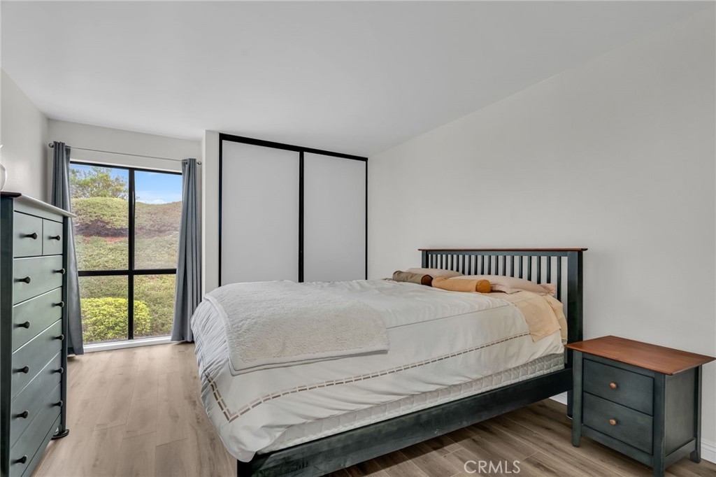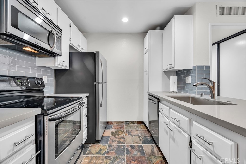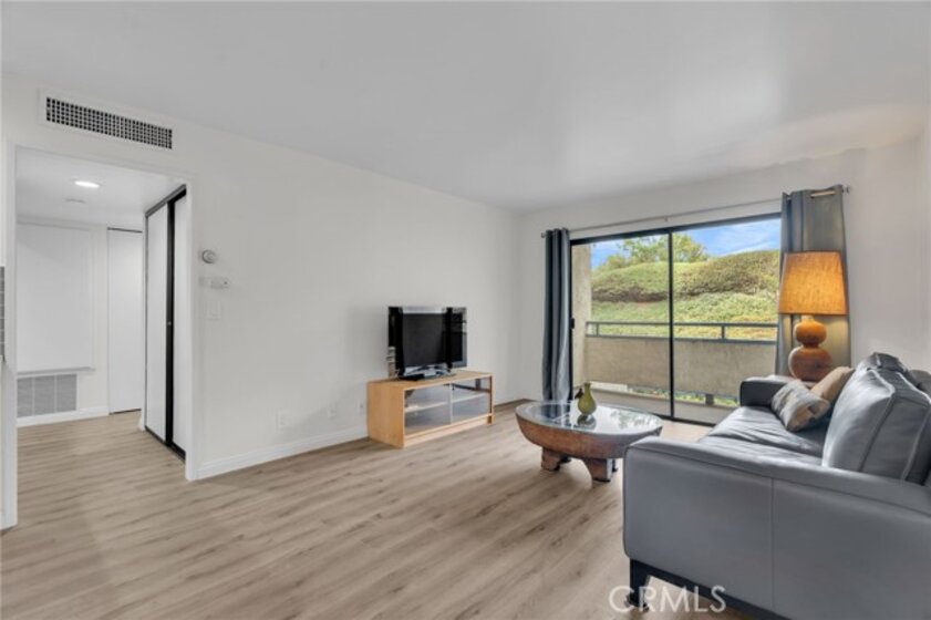 The lowest-priced unit in the desirable Chadwick Terrace, this 1-bedroom, 1-bath 2nd-floor condo offers a well-thought-out 621 sq ft layout. Vinyl flooring flows through the living and dining areas into a private patio with peaceful hillside and oak views. The kitchen features modern counters and updated lighting, and both the bedroom and hallway provide ample closet space. Additional amenities include tandem 2-space parking and low HOA fees. Located in a peaceful, serene community with low turnover, this home offers exceptional value and is perfect for an active lifestyle near parks, shopping, dining, and commuter routes.