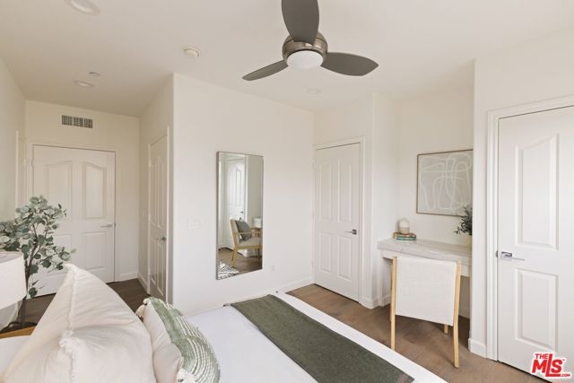 This stunning penthouse blends privacy, luxury, and a premier location. Built in 2008, the residence boasts no shared walls, abundant natural light, and a spacious layout with 3 bedrooms, 3.5 bathrooms, a versatile bonus room/office or 4th bedroom, and three private patios. The open-concept living and dining area is ideal for entertaining, complete with a wet bar, wood floors, recessed lighting, and a cozy fireplace. The chef's kitchen is appointed with stainless-steel appliances, and counter seating. The oversized primary suite opens to a west-facing balcony and offers a spa-like bathroom with dual sinks, a soaking tub, a separate shower, and two walk-in closets. A second primary suite features its own east-facing patio and a third bedroom, both of which are en-suite with generous walk-in closets Additional amenities include custom window treatments, ceiling fans, dual-zone HVAC, a spacious laundry room with washer and dryer, and two secure underground side-by-side parking spaces plus guest parking. Residents also enjoy access to a rooftop deck with sweeping city and mountain views. Perfectly situated moments from Cedars-Sinai, Robertson Blvd., 3rd Street, Burton Way, The Grove, Rodeo Drive, and the world-class dining and shopping of Beverly Hills and West Hollywood. This penthouse delivers sophistication, convenience, and an unparalleled lifestyle.