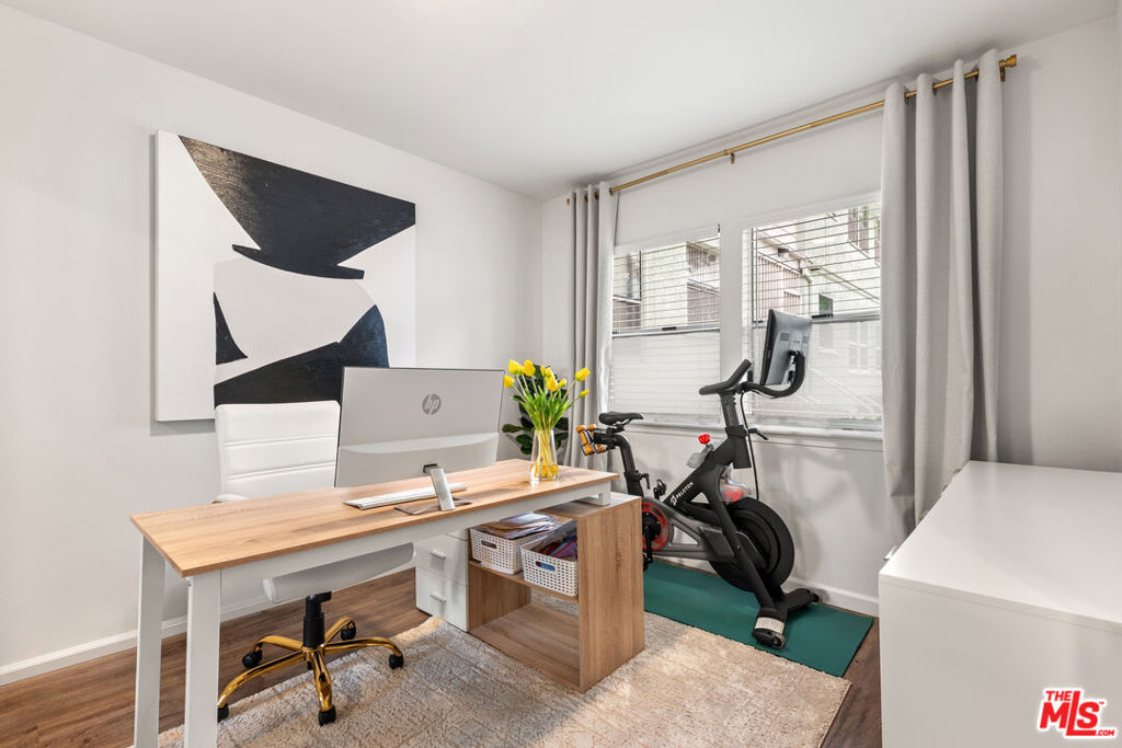 Situated in the heart of Park Hills Heights & just moments from Baldwin Hills, Culver City, and Silicon Beach, this thoughtfully updated 2 Bed, 1.5 Bath condo offers a rare opportunity to own in a 24-hour guard-gated Los Angeles community for under $500,000. Set within the established Cameo Woods enclave, the home balances privacy, comfort, and easy access to some of the Westside's most dynamic neighborhoods. Spanning 867 sqft on a single level, the floor plan is efficient and intuitive. The living and dining area connect seamlessly, creating an open central space for everyday living or casual entertaining. The remodeled kitchen features quartz countertops, stainless steel appliances, and a dedicated pantry, with direct access to a semi-private outdoor seating area and shared green space that functions like an extended backyard. The spacious primary bedroom is generously sized and offers convenient access to a remodeled full bath featuring a shower-tub combo. A second bedroom and powder room provide flexibility for guests, a home office, home gym, or creative use. Additional highlights include: updated copper plumbing & recessed lighting, a newer water heater, in-unit washer and dryer, a private detached one-car garage, plus ample guest parking within the community. Cameo Woods residents enjoy resort-style amenities: a heated community swimming pool, two spas, a tennis court, a dog park, a clubhouse, and a community garden. Additionally, the HOA dues cover water, sewer, trash, 24/7 security, community landscaping, & common area maintenance. Conveniently located near the 10 and 405 freeways, and just minutes from the Baldwin Hills Scenic Overlook, Kenneth Hahn State Recreation Area, the Culver City Stairs, Whole Foods, The Platform, the Helms District, Marina del Rey, LAX, UCLA, and major studios, this condo truly places you at the center of Los Angeles while offering a calm, gated retreat to come home to.