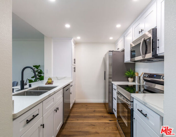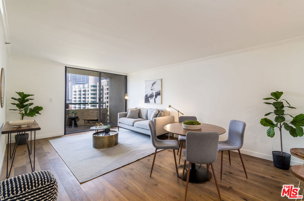 You'll love this incredible unit with spectacular views and a stylish remodel. Featuring a gourmet kitchen with new appliances, cabinets, countertops, and fixtures. A perfect layout with a sizable bedroom, custom-built closets, smooth ceilings, engineered hardwood flooring, and a large balcony with amazing views of the private green spaces below and the city beyond. Skyline Condominiums is in the heart of the South Park neighborhood and within blocks of many of Downtown LA's best attractions - LA Live, Crypto.com Arena, FIDM, Wholefoods, Ralphs, Macy Bloc, 7th & Fig, Metro, hip restaurants, coffee shops, and bars. Resident amenities include 24-hour security and doorman, on-site management, a gym with weight room and cardio equipment, racquetball courts, steam room, a large pool and spa, tranquil green space sitting areas, BBQ area, clubhouse, and guest parking.