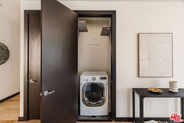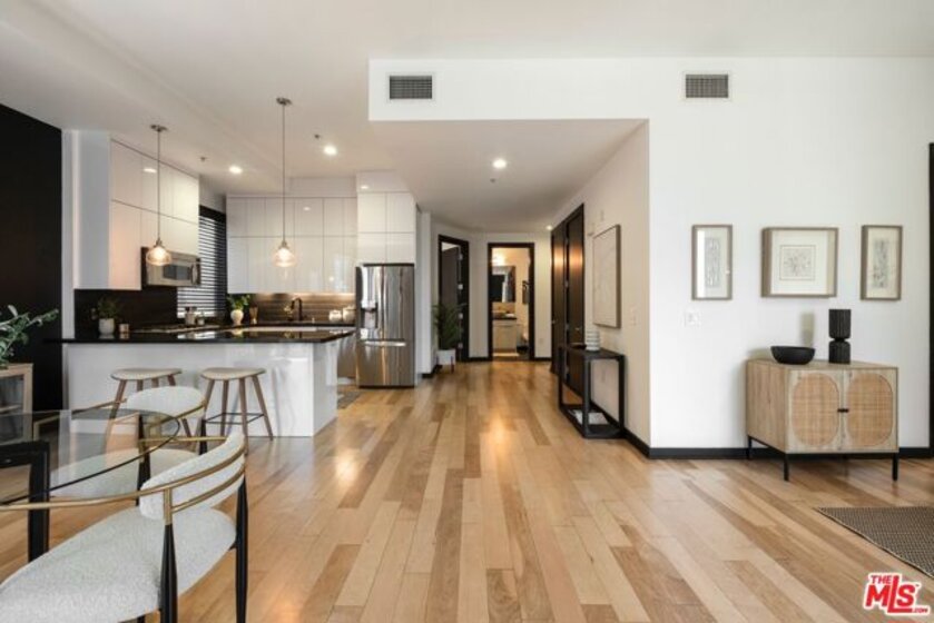 Bold and modern, welcome to a corner loft at the Hope Street Lofts in the Financial District of Downtown L.A. Immediately upon walking in you will be greeted by a formal hallway entrance, tall gallery walls and brand new wood floors. The semi-open floor plan is polished to perfection. The condo renders stunning city views from South and West facing floor-to-ceiling windows/walls. 2 stunning black accent walls add a layer of sophistication. Undeniably stylish custom Hunter Douglas window dressings. The loft features 2 bedrooms with 1 fully enclosed bedroom and 2 full baths. The perfect place to entertain or unwind. The sleek kitchen includes brand new double stacked white cabinetry, brand new backsplash, new stainless steel fridge & dishwasher and an oversized breakfast bar. Two full bathrooms with soaking tubs each. The principal bathroom features luxurious dual vanity sinks, mosaic tile, and a wow-factor spacious walk-in closet with custom shelves. Recessed lights throughout. Washer and dryer in unit. Hope Street Lofts is a boutique art deco condo building with only 80-units. Building amenities include 24/7 security, front desk concierge, a rooftop with panoramic Downtown views, a helicopter pad, sundeck, barbecue grills and a chic wet bar. The rooftop was just redone and new furniture has been ordered. For lifestyle convenience, a game room and gym. Bonus feature: Large storage room in the basement exclusive to this unit. 1 unassigned parking space included - onsite with an elevator bank giving access to the 11th floor as well as the lobby.Located directly above the 7th Street Metro Station, enjoy the best of urban dwelling at your doorsteps. Near all the action at Crypto Arena or LA Live. Enjoy the best of food and beverages at Javiers or Bottega Louie. LIVE jazz on the rooftop of the Delphi Hotel just 1 block away. Across the street from the Bloc and the Downtown favorite Joeys. Whole Foods and the Broad Museum are a stone's throw away. Enjoy rich and diverse dining, museums, and entertainment options. Truly, the best location in Downtown L.A.