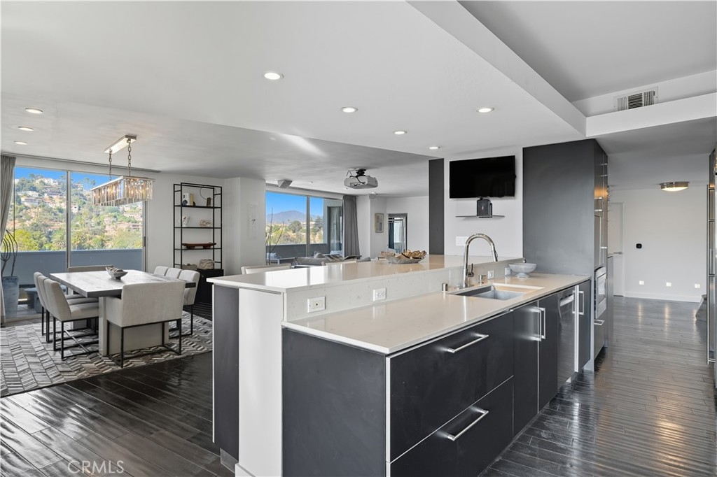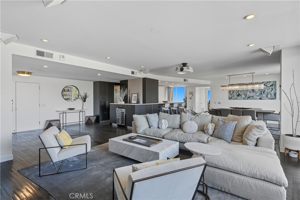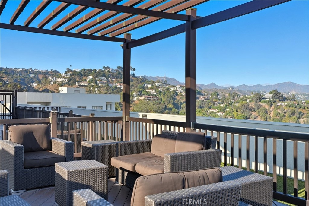 Experience penthouse living at its finest in the prestigious Franklin Towers. This rare offering features sweeping, unobstructed views that span from Century City and the Hollywood Hills to the Pacific Ocean, all framed through two expansive balconies with dramatic floor-to-ceiling glass panels. A double-door formal entry welcomes you into a light-filled open floor plan designed for both grand entertaining and everyday elegance. The living and dining areas feature integrated surround sound, a ceiling-mounted projector with retractable screen, and seamless indoor-outdoor flow; perfect for hosting in true Hollywood style. Featured in HBO’s Entourage, this residence embodies cinematic glamour. The chef’s kitchen is a statement in modern design, outfitted with sleek custom cabinetry and premium built-in appliances. Two luxurious ensuite bedrooms, each with private balcony access and panoramic views, and spa-inspired bathrooms and generous size walk-in closets. Additional highlights include a powder room, in-unit laundry, hardwood flooring throughout, and 3 assigned parking spaces. Franklin Towers is a Hollywood landmark, offers white-glove amenities including 24/7 concierge and onsite valet service, heated lap pool and spa, steam room, sauna, rooftop fitness center, clubhouse, dog run, and an expansive rooftop deck showcasing 360-degree views from cityscape to ocean. Perfectly positioned near the iconic Sunset Strip, Hollywood Bowl, Walk of Fame, and Runyon Canyon trails, this penthouse embodies the ultimate blend of luxury, lifestyle, and location.