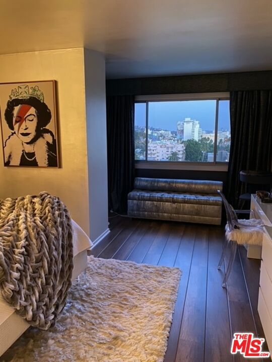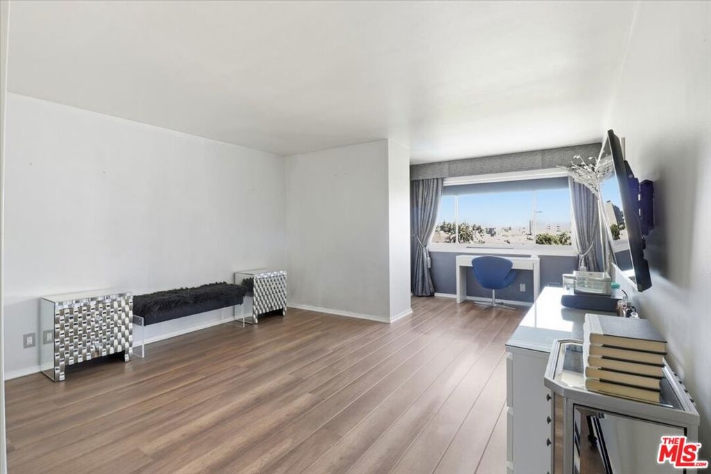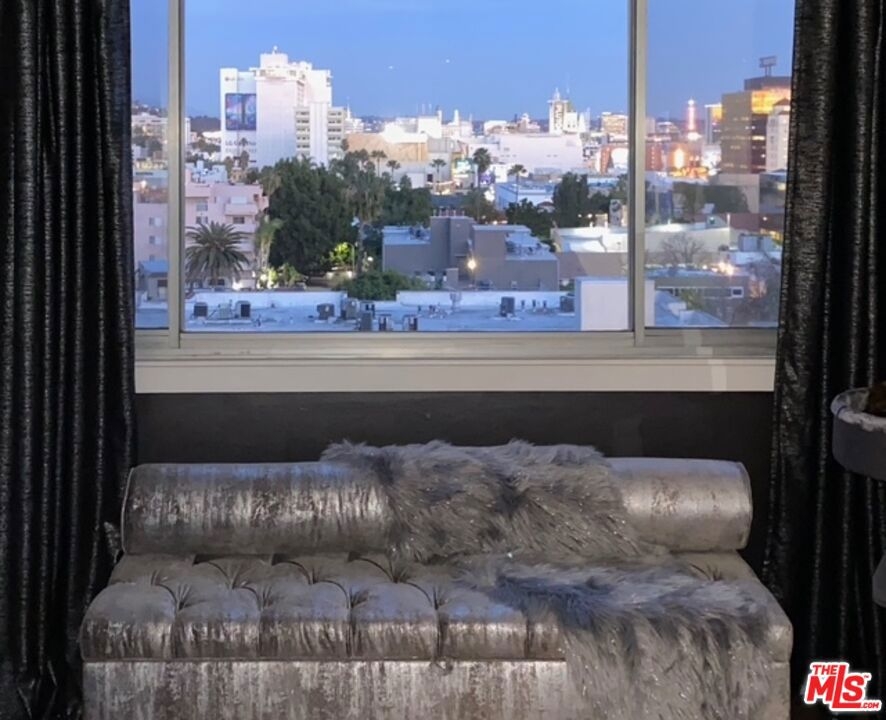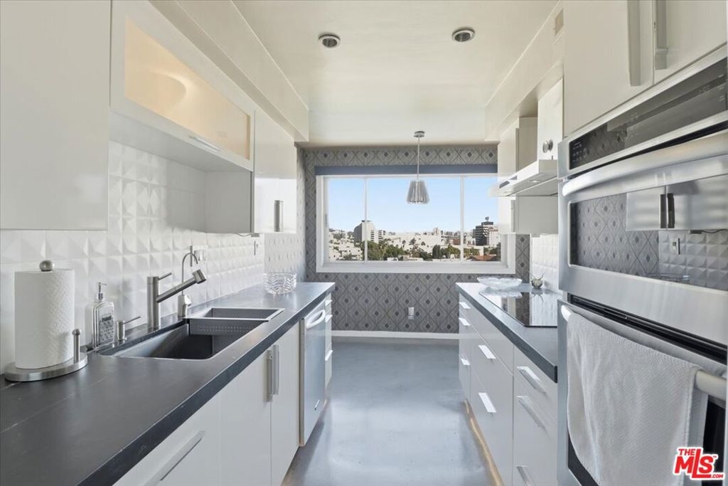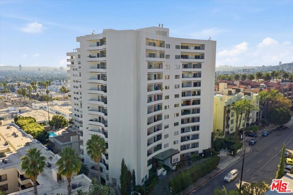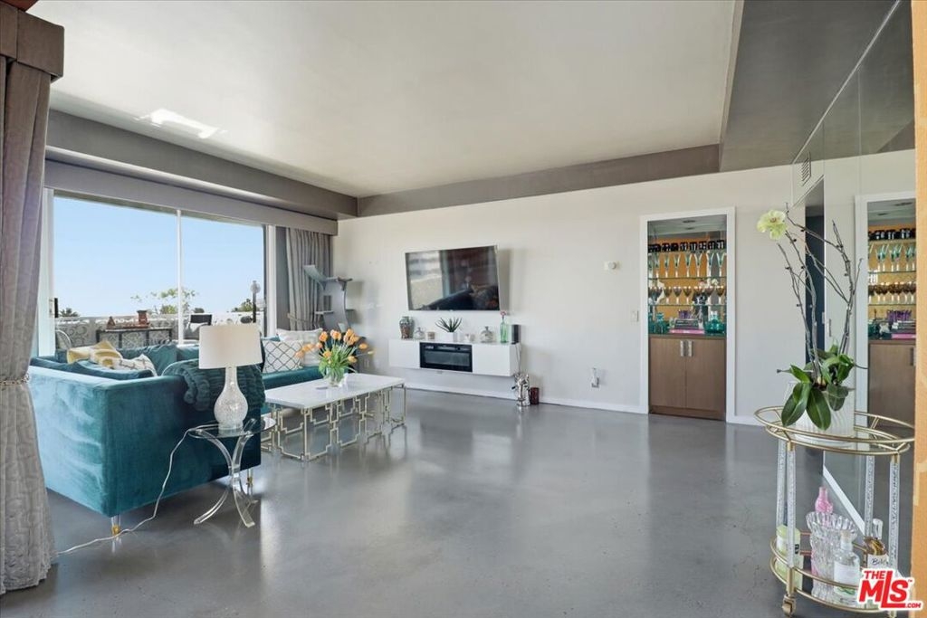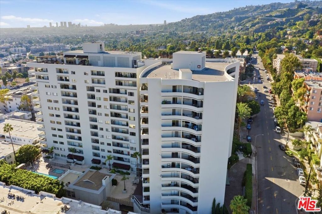Perched on the fifth floor of the sought-after Franklin Towers at 7250 Franklin Ave #517, this renovated corner residence offers 2 bedrooms and 2 bathrooms with sweeping views of the Los Angeles skyline. The generous wraparound terrace showcases dramatic city vistas and spectacular sunset displays. Meticulously upgraded throughout, this contemporary home features concrete and hardwood floors, designer wallpaper accents, and a custom mirrored wall that enhances the sophisticated aesthetic. The designer kitchen is outfitted with stainless steel appliances, contemporary cabinets, and black granite countertops that blend sophistication with practicality. A newly updated air-conditioning system ensures year-round comfort, while the luxurious cedar-lined walk-in closet and custom built-in closets provide abundant storage solutions. Convenience is enhanced with in-unit laundry hookups and two designated parking spots plus additional storage space. Franklin Towers delivers exceptional full-service amenities including round-the-clock concierge and security services, valet parking, a temperature-controlled pool, spa facilities, steam room, dry sauna, dedicated yoga studio, and a glass-walled rooftop fitness center offering magnificent city scape panoramas. The rooftop entertaining space and clubhouse featuring a full kitchen and comfortable lounge area create the perfect setting for gatherings. Perfectly positioned near Runyon Canyon, Hollywood Boulevard, and the Sunset Strip, this outstanding residence provides unparalleled urban luxury living.