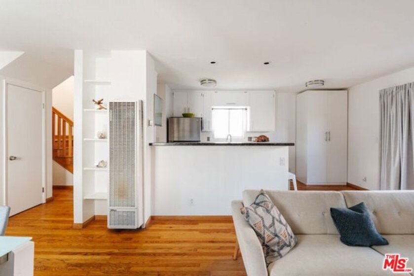 A modern retreat in the heart of Silver Lake. This standalone residence offers a light-filled interior, smart layout, and a sense of privacy within a thoughtfully maintained community.Recently upgraded with new Hardie Board siding and all-new Andersen double-pane windows and patio doors, the home pairs design-forward style with long-term durability and energy efficiency. Clean architectural lines, hardwood flooring, and a bright, open layout define the living experience.The main living and dining areas flow seamlessly and are filled with natural light, creating an inviting setting for both entertaining and daily life. The kitchen is streamlined and efficient, offering generous storage and visual continuity with the main gathering spaces.Three bedrooms provide flexibility, including vaulted ceilings and a lofted area that functions beautifully as a creative workspace or additional storage. Both bathrooms have been fully remodeled with cohesive, modern finishes and character-rich tile.A private balcony extends the living space outdoors with neighborhood views, while two dedicated parking spaces and in-unit laundry add everyday convenience.Ideally located near LA Mill, Pine & Crane, Botanica, Bacari Silver Lake, Bar Siesta, and the Silver Lake Reservoir, this is a turnkey opportunity in one of Los Angeles' most dynamic neighborhoods.