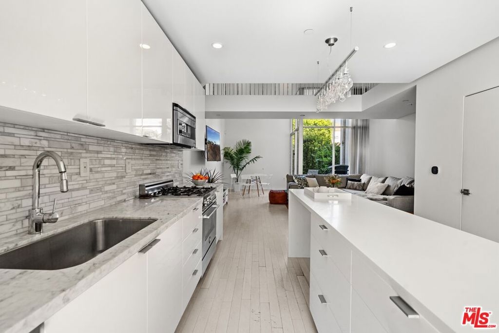 Ideally situated at the crossroads of Melrose & Fairfax in West Hollywood, this elegant residence offers a lifestyle rooted in walkability, flexibility, and connection to the city's creative energy. Tucked away from major thoroughfares yet moments from dining, shopping, and cultural hubs, it provides a rare balance of calm and convenience. Designed for Buyers who value location and ease, this home is well suited as a primary residence, city retreat, or long-term hold in one of Los Angeles' most consistently desirable neighborhoods. Nestled into an an enclave of only 8 private residences, the soaring light filled spaces over white stained French oak floors feature sleek modern finishes throughout. The lower level offers an open public space that includes a bright kitchen outfitted with a center island & high end appliances plus dining-living spaces with soaring ceiling height that open onto a private outdoor patio. A second level bridge leads to a loft area ideal as a media room, office or gym. Two en suite bedrooms reside on the top level with city views, custom built in closets & private bathrooms with floating cabinets & walk in tiled showers. Located in West Hollywood between the trendy boutiques, cafes, gourmet coffee shops of both Santa Monica and Melrose Avenues, this architectural home is a sleek retreat from the bustling energy of the surrounding urban amenities & activities.