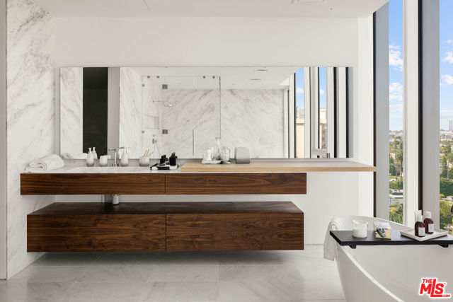 Sub-Penthouse 1102 (aka 11B) of the Four Seasons Private Residences Los Angeles. This nearly 5,000 square foot estate in the sky boasts unparalleled, unobstructed 270 degrees city lights, ocean and landmark views of Los Angeles. recently custom built out with high design, this 2-bedroom (which could be easily converted into a 3-bedroom) residence features wide plank white oak floors, wrap-around walls of glass, a boutique-sized primary closet, phenomenal entertaining space, and two spacious balconies which provide an enviable indoor-outdoor flow by way of accordion panels of glass. Enter the residence directly through private, secured elevator access from the lobby or garage level (where you can store your vehicles in your private 4-car garage). Towering above its neighbors and set in a coveted central location adjacent to the iconic Four Seasons Hotel, the Four Seasons Private Residences Los Angeles is a limited collection of 59 residences ranging from one- to four-bedroom homes, priced from $2.75M to $27M. Set within a distinctive, newly-built 13-story building, the residences offer living spaces steeped in California Modern style with custom interiors by Martyn Lawrence Bullard, chef-caliber kitchens with Gaggenau appliances, and spa-like baths. Crafted to maximize L.A.'s sought-after indoor-outdoor living, every residence is bathed in an abundance of year-round Southern California golden light, and many of the residences boast a rooftop garden, an open-air terrace and/or sweeping views of the city. Residents of the Four Seasons Private Residences Los Angeles enjoy an unrivaled, service-rich lifestyle with five-star onsite services, including world-class concierge, in-residence dining and housekeeping, plus a private, saltwater pool with cabanas, a 19-seat IMAX Private Theatre Palais and lounge, a Harley Pasternak-designed Fitness Center, a residents' lounge, and more.