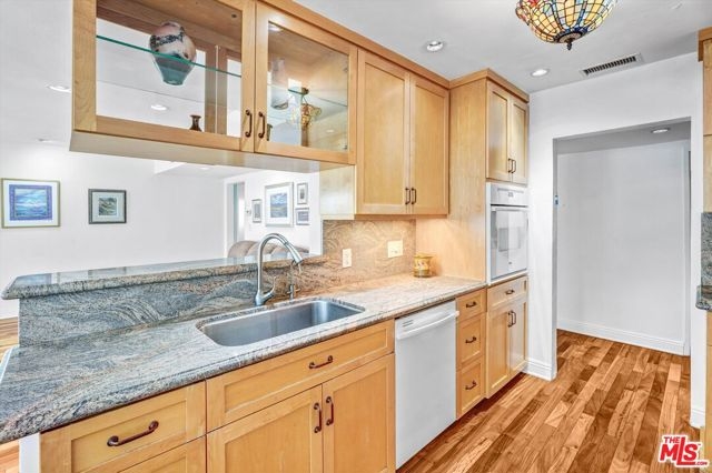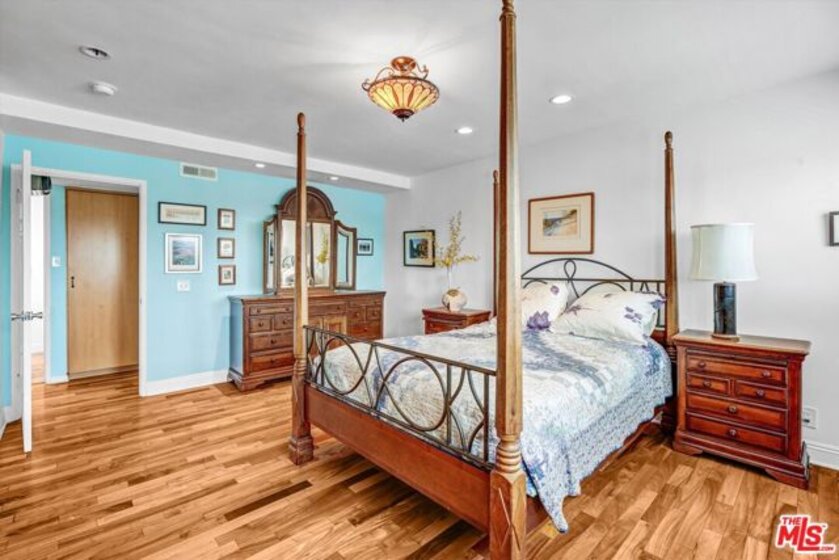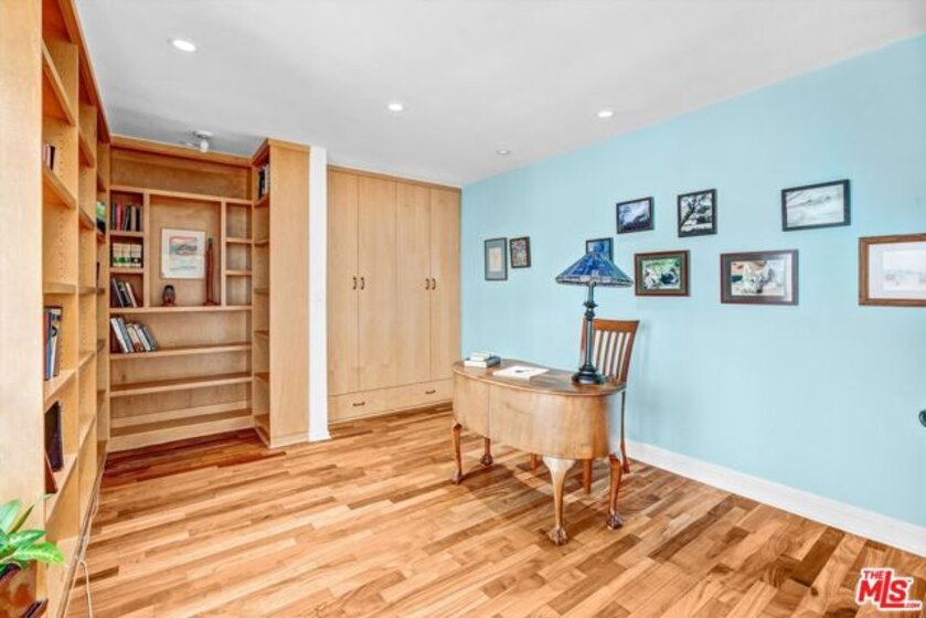 Enjoy abundant natural light throughout this inviting unit, located just steps from Beverly Hills. (Tax record indicates 1BR + Den 1208 Sqft) The expansive living and dining areas feature a fireplace and open to a large balcony. The remodeled kitchen boasts stainless steel appliances and a convenient breakfast bar. The generously sized primary bedroom includes custom wall-to-wall closets, while the versatile den with its own closet offers an ideal space for a home office or second bedroom. The main bathroom is enhanced by a skylight and includes both a shower and tub. Additional highlights include wood flooring throughout, central air conditioning, 1 assigned garage parking space, and community laundry facilities. The HOA fee is exceptionally low at ONLY $260 per month. Centrally located, this residence is short distance to La Cienega Park, including tennis and pickleball courts, and offers easy freeway access (I-10 and I-405). Nearby, enjoy a variety of restaurants and cafes along Pico Blvd and Beverly Hills. Very EZ to show. Don't Miss it.